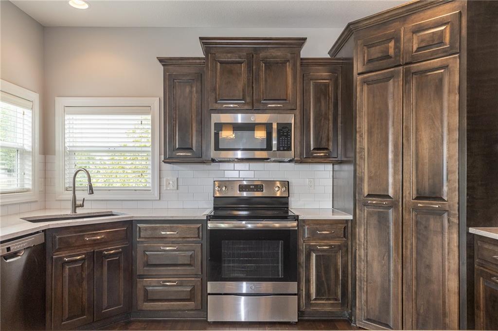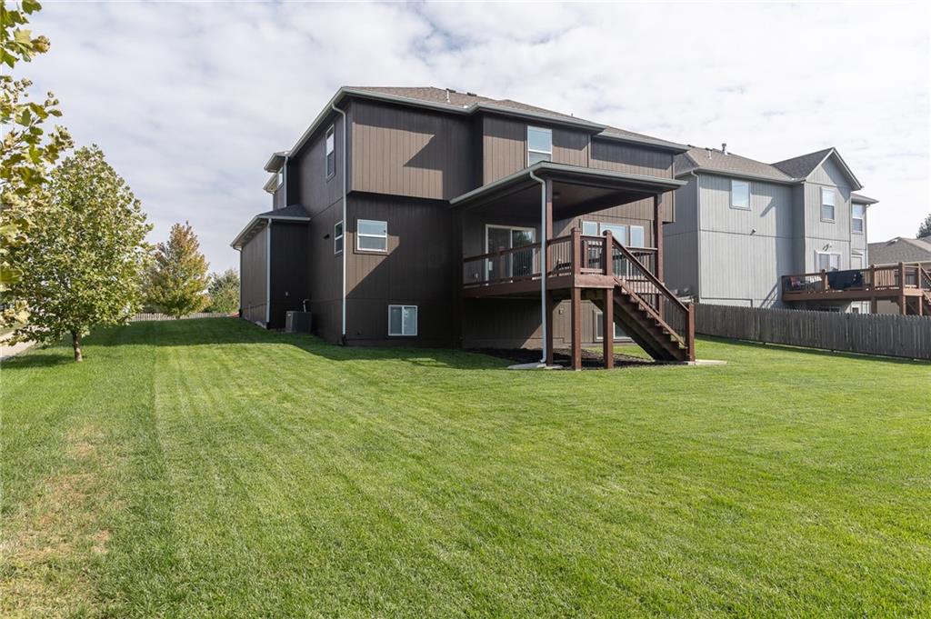 Stunning 5-Bedroom Home in Peaceful South Olathe Neighborhood! Welcome to this beautifully upgraded 5-bedroom, 4.5-bathroom home nestled in a quiet and desirable South Olathe community—just blocks from the local elementary school! Thoughtfully designed and impeccably maintained, this home offers comfort, space, and style at every turn. Step inside to discover high-end finishes throughout and an open, flowing floor plan ideal for everyday living and entertaining. The gourmet kitchen features a spacious walk-in pantry and premium finishes, while the inviting living areas are filled with natural light. The expansive primary suite is a true retreat, boasting a luxurious soaking tub, oversized walk-in shower, and a generous walk-in closet. The fully finished basement is a showstopper, complete with a stylish bar, large entertaining space, and a private bedroom and full bath—perfect for guests or multigenerational living. Enjoy the peace and privacy of the large deck overlooking the backyard and green space behind—ideal for relaxing evenings or weekend gatherings. Don’t miss your chance to own this exceptional home in one of Olathe’s most peaceful and family-friendly neighborhoods!