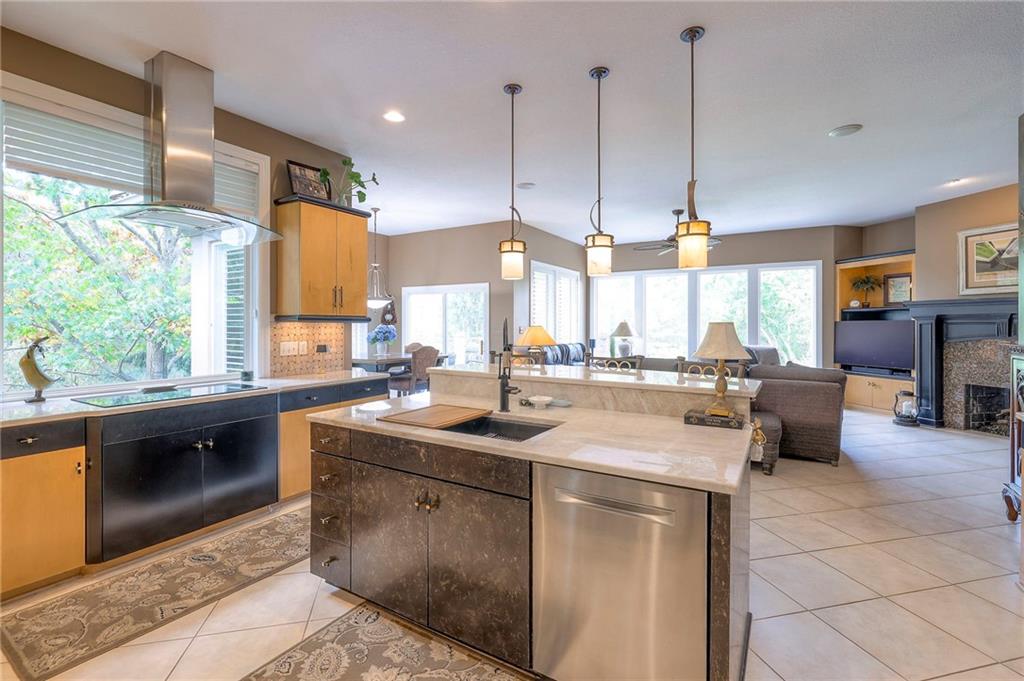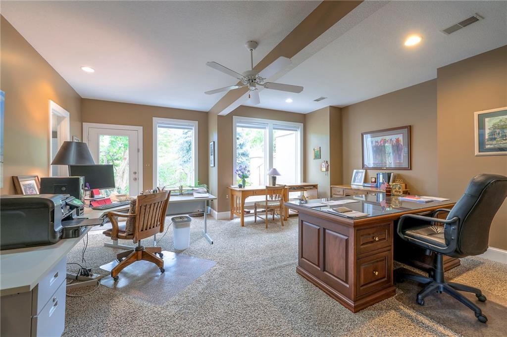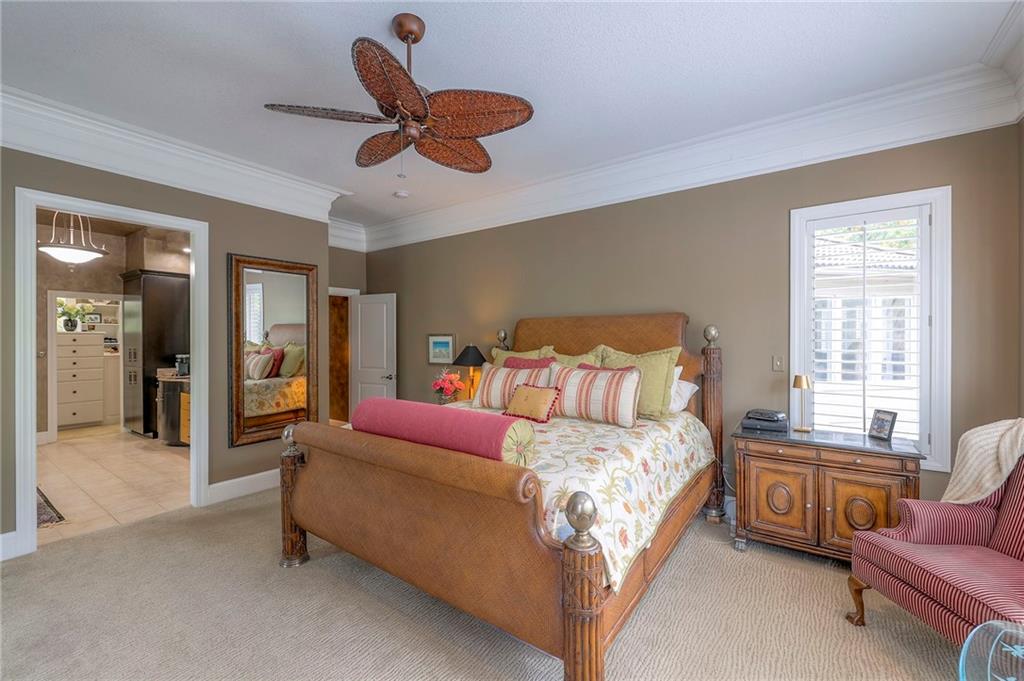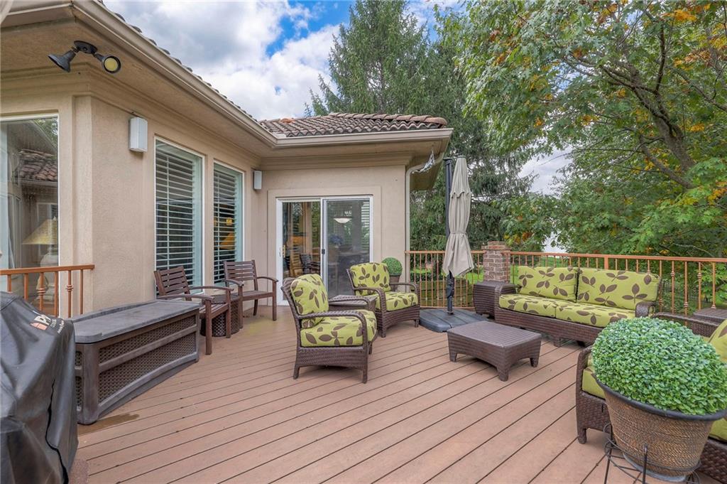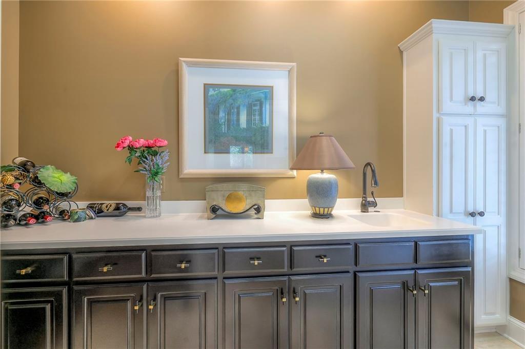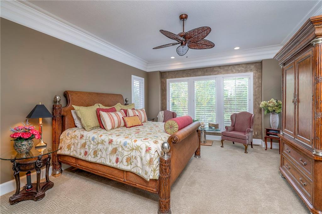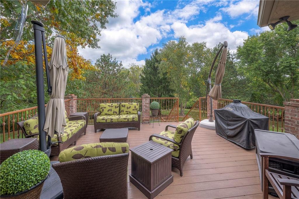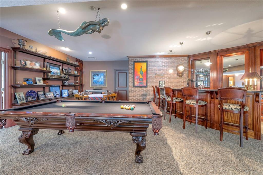 This stunning one-of-a-kind custom builder’s home sits on a private, beautifully landscaped lot surrounded by mature trees and natural views with a creek. Designed and built by the owner as a personal showpiece, every detail reflects craftsmanship and quality. Grand entryway with beautiful custom doors and built-ins. The formal dining and living rooms impress with 14- and 10-foot ceilings, faux-finished walls, and a fireplace with gas logs. The updated kitchen features custom curved cabinetry, quartz countertops, and high-end appliances including a Bosch dishwasher, double convection oven, warming drawer, Franke sink, and induction cooktop. A spacious laundry and hobby room just off the kitchen includes a sink and ample work area. Step out onto the deck to enjoy peaceful outdoor living and a private, wooded backdrop. The owners’ suite feels like you’re sleeping in a treehouse, offering tranquility and luxury with its grand ensuite bathroom. Enjoy the double vanity, walk-in shower with dual showerheads, whirlpool tub, and a large walk-in closet complete with a custom island and built-in dressers. The lower level is perfect for entertaining with a solid mahogany bar topped in granite, brick accents, and a game area with built-in pool table storage. Enjoy the cozy great room with surround sound and a brick fireplace with gas logs. Two spacious bedrooms each have private baths, and a fourth room—currently used as an office—has private exterior access, ideal for a home business. Walk out to the slate patio and firepit surrounded by professional landscaping, complete with irrigation, 21 mature pine trees, and 9 hardwoods. Additional features include custom plantation shutters, a grand circle driveway with cut stone front porch, and an oversized three-car garage with sink and epoxy flooring. This exceptional property perfectly blends craftsmanship, privacy, and comfort in a truly one-of-a-kind setting.