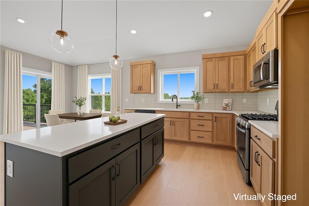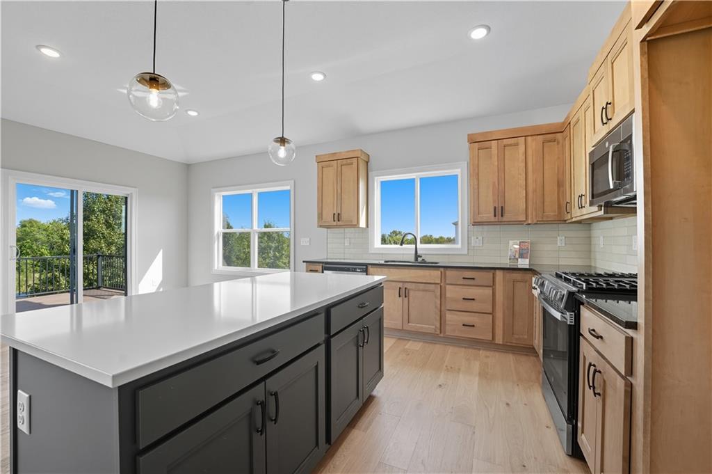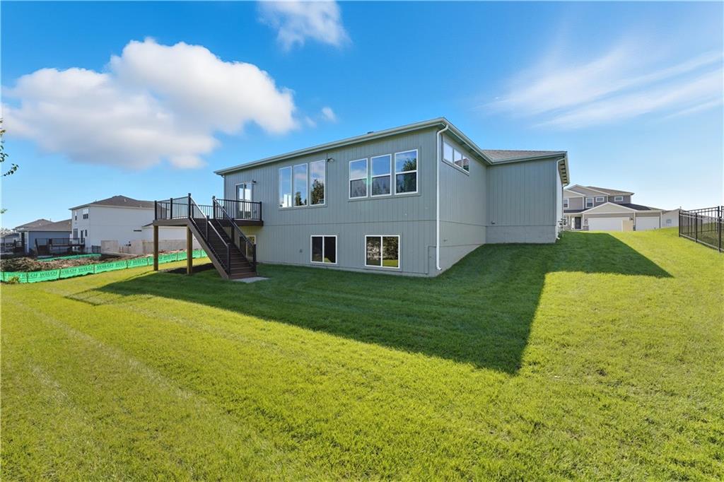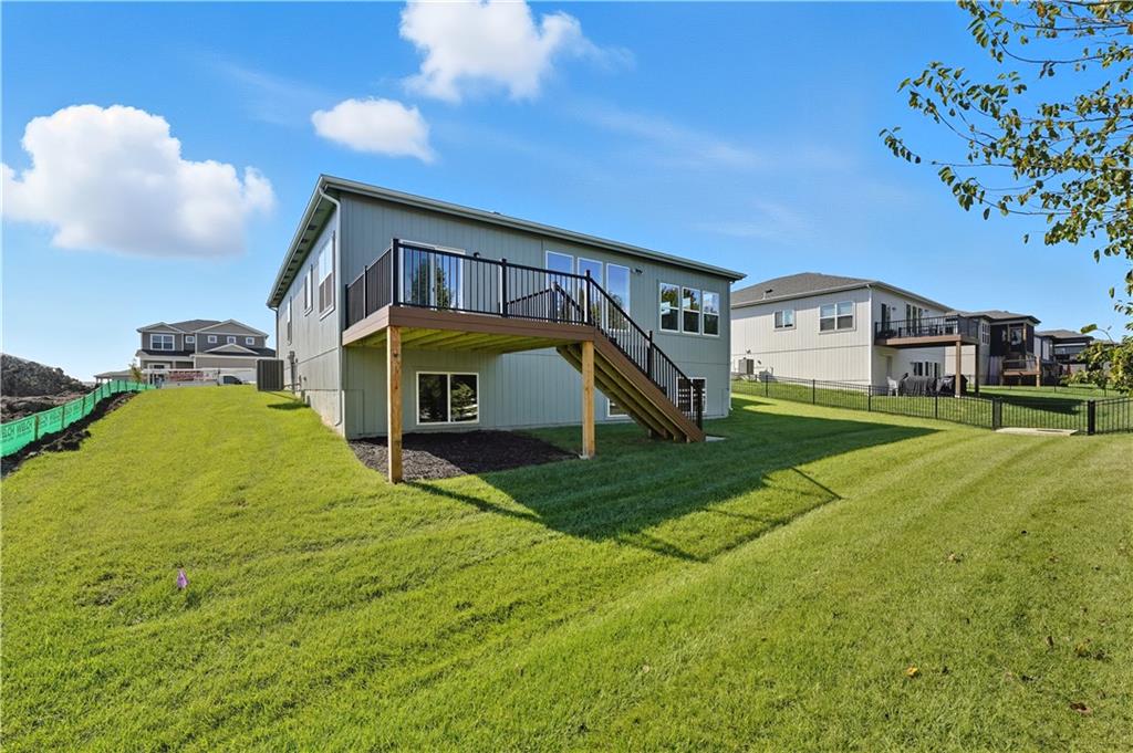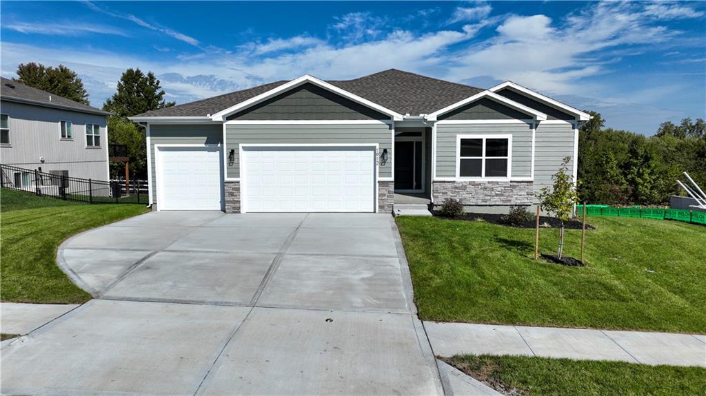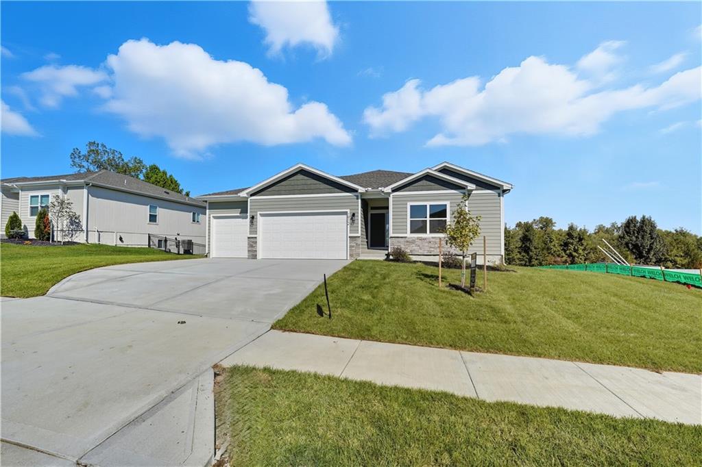 Available for quick move-in! This is the last chance to back to rural setting in a new construction home at Stoney Creek! Introducing “Avalon,” where the timeless appeal of main-level living meets modern comfort and convenience. This 3-bedroom, 2-bath floorplan boasts an expansive open living concept, with a spacious living room, dining area, and kitchen with vaulted ceilings and ample natural light. Retreat to the generous primary bedroom suite, complete with a large closet for all your storage needs. This home boasts a daylight foundation with ‘Craftsman’ style exterior, including a 12x12 deck with stairs to the grade. Elevate your lifestyle with the option to expand your living space further with an optional lower-level finish, creating the perfect sanctuary to call home. This home features upgraded design choices with the 'Luminous & Light' package, tile upgrades in the laundry room, mud room and kitchen backsplash. Some photos digitally staged for inspiration. Stoney Creek HOA fees are only $640 annually and includes trash, recycling, planned social activities, clubhouse, 3 pools, walking trails, playground, volleyball and sidewalks adjacent to Osage Trails Park.