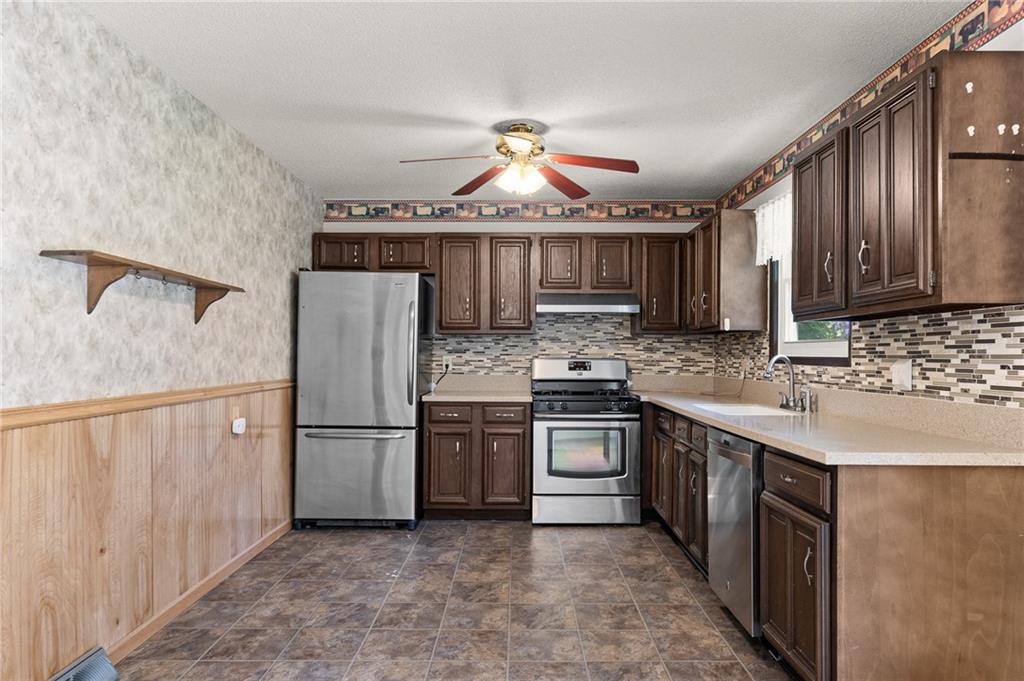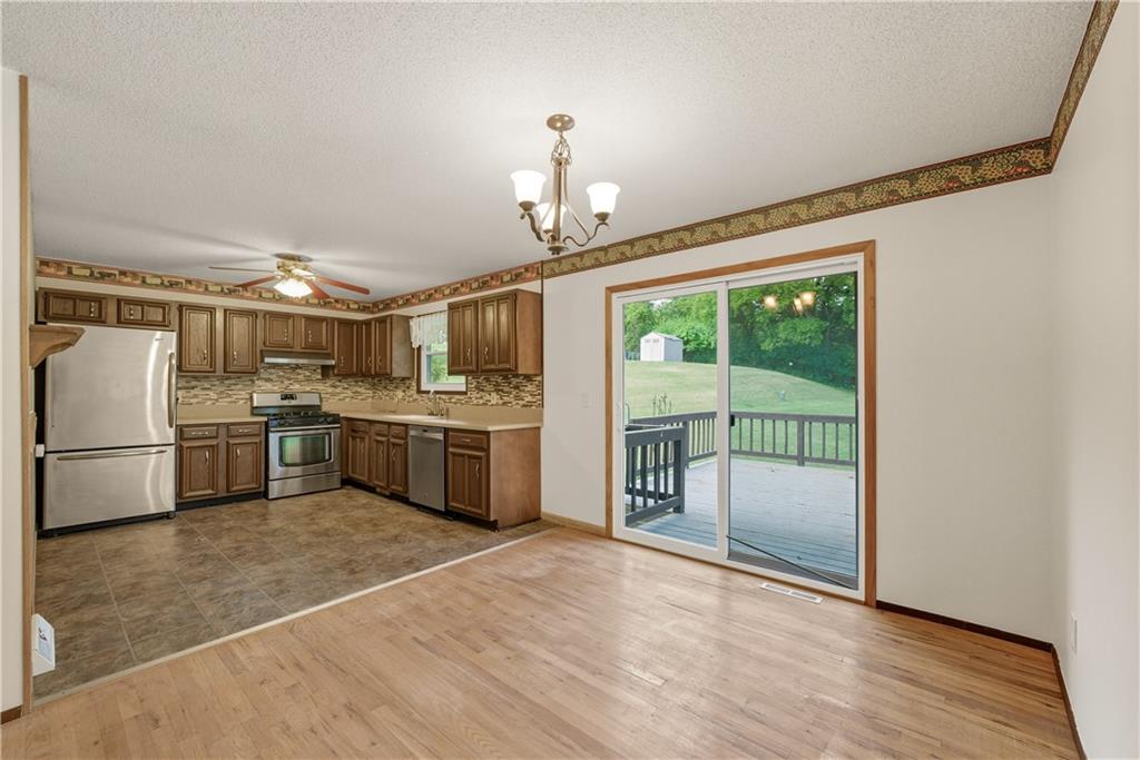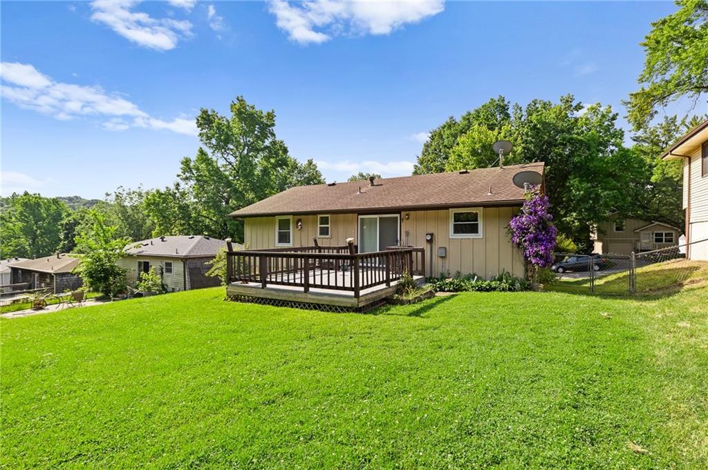 Beautiful split level home in Misty Woods nestled on RARE 1/3 Acre lot! Located in unincorporated Platte County so great for taxes and feeds into the coveted Park Hill School District! Lovingly cared for, this home feels warm and welcoming from the moment you walk in. Beautiful hardwoods throughout with new vinyl windows and freshly painted interior! Stainless steel kitchen appliances and washer/dryer to stay for Buyer's ease. Lower level offers basement recreation room, ample unfinished storage, and deep 2 car garage with new garage doors. Enjoy the great outdoors from your deck overlooking the 1/3 acre backyard which features 2 spacious exterior sheds. Welcome Home!