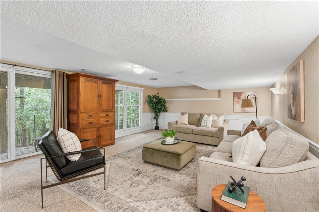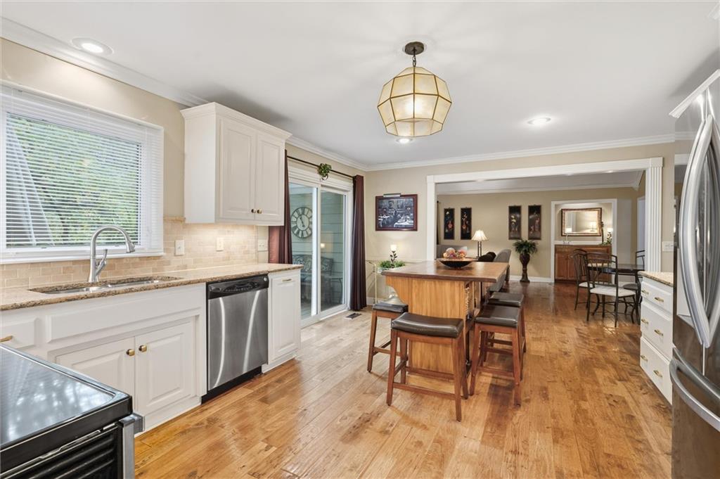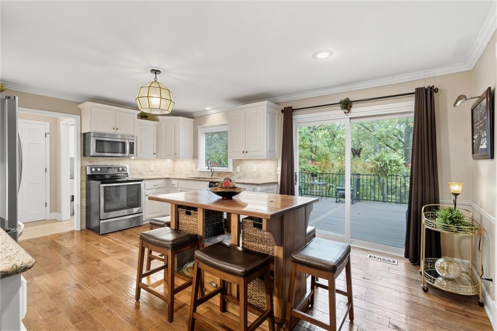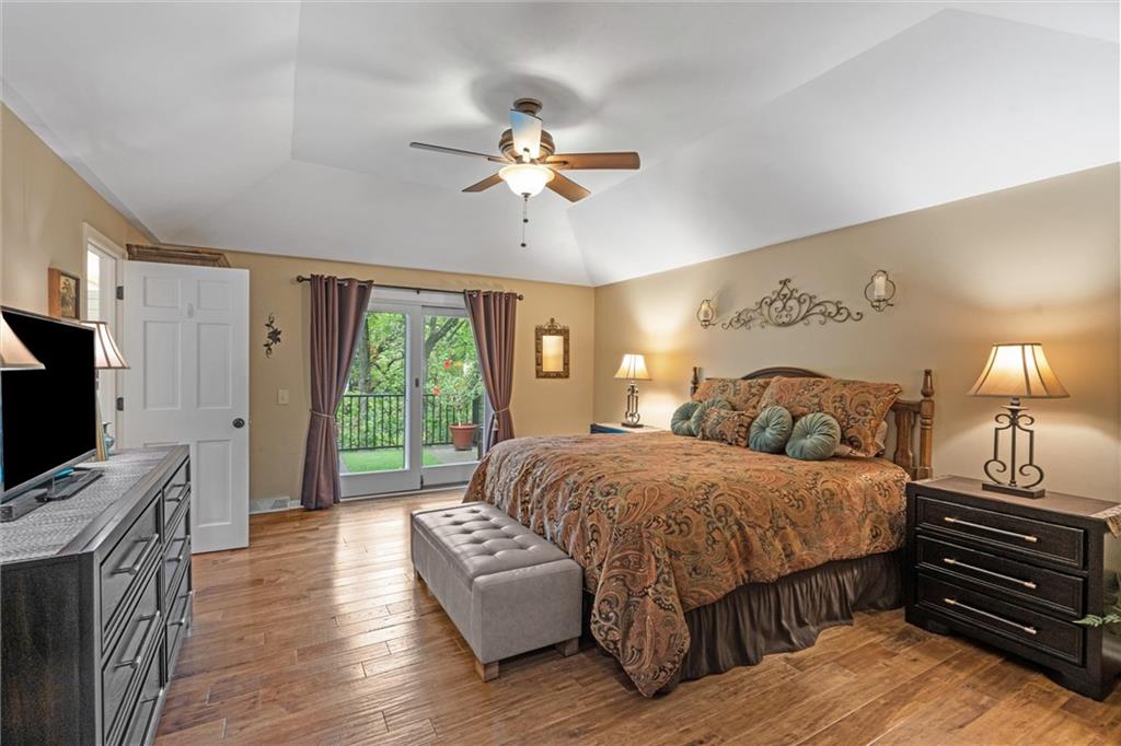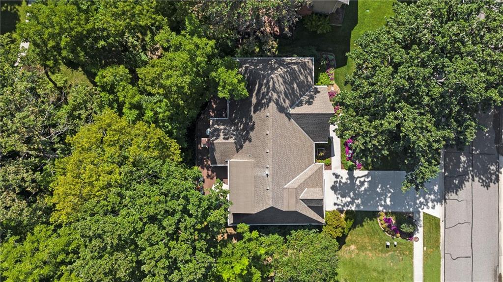 This beautifully updated 1.5-story in Greystone South has incredible curb appeal with lush, colorful landscaping, a front fountain, and pristine Hardie siding. Inside, the main level features a vaulted family room with a fireplace, a formal dining room, and a formal living room currently used as a piano room. The kitchen has been updated with white cabinetry, stainless appliances, and easy access to the powder room and laundry. The main floor layout makes one-level living simple, with the primary suite, remodeled ensuite bath, and a second bedroom with a full bath all on the same level. Upstairs, two more bedrooms and a hall bath provide great space for guests, kids, or a home office. The finished basement adds even more flexibility with two large living areas, another fireplace, and walkout access to a lower patio. Out back, the setting is hard to beat. The sellers combined two decks into one massive outdoor living space surrounded by trees, birds, and total privacy. No fences or back neighbors, just a peaceful nature view that feels like a private retreat. All of this in a fantastic Lenexa location, with grocery stores, pharmacies, Starbucks, Tanner’s, McDonald’s, liquor stores, and Oak Park Mall all within about eight minutes. Updates include a new driveway and garage floor, James Hardie siding, new gutters with leaf guards, sprinkler system, added hardwoods on the main level, and more. Those are just some of the improvements. See supplements for the full list. A rare combination of space, updates, and privacy in one of Lenexa’s most loved neighborhoods.