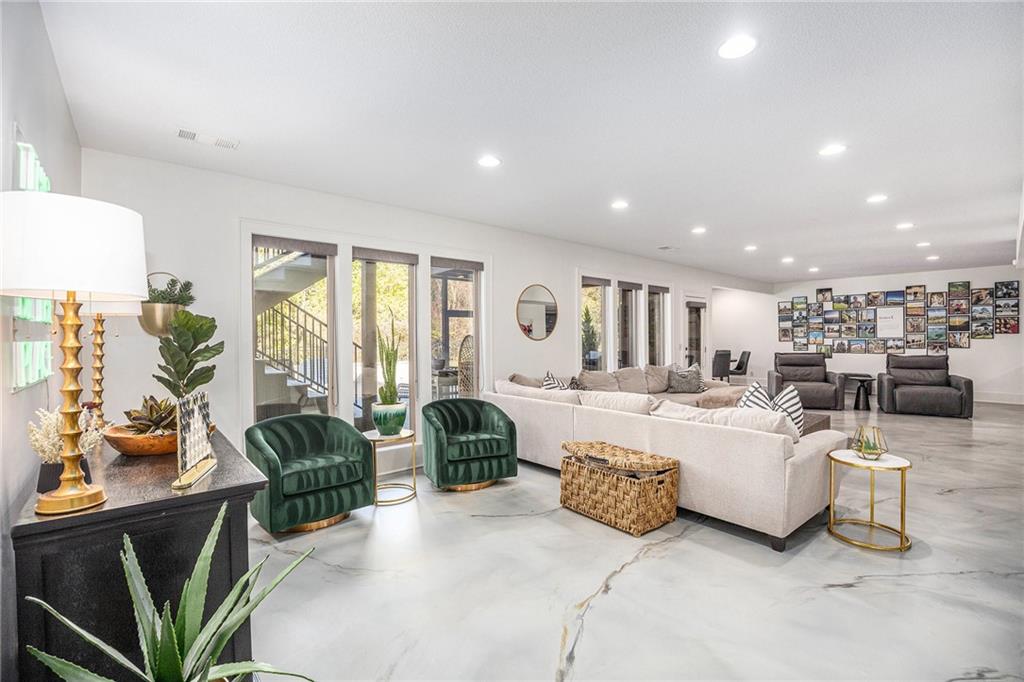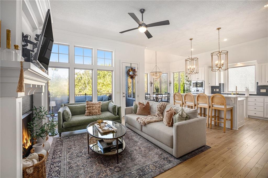 This gorgeous 1.5 story home in the Wyngate Subdivision is close to schools, shopping, parks, and more! Enjoy the outdoors on the newer composite deck, in the serene, screened patio area, or in the fabulous swimming pool - all backing to trees and greenspace. Inside this stunning home are numerous updates including gorgeous lighting, updated fixtures, knobs & pulls, interior paint, and more! New hardwood floors run throughout the main level. The updated kitchen features new quartz counters, a gorgeous glass tile backsplash, newer appliances, a step-in pantry, an island with bar seating, and a large, light, and bright eating area. The kitchen is fully open to the beautiful hearth room with a zero-clearance fireplace and an amazing, custom, built-in cabinet. The fully updated Butler's pantry connects the hearth room to the spacious dining room and boasts new cabinetry, a soapstone countertop, and a built-in nugget ice maker. The spectacular living room shares a fireplace wall with the hearth room and features vaulted ceilings and an amazing chandelier. The main level primary bedroom has a tray ceiling, bay window, and hardwood floors. The primary bath enjoys double vanities, a jetted tub, a tiled shower, and a large walk-in closet. The main level also boasts a half bathroom and laundry room. Upstairs is a small loft/landing area and three bedrooms - all with walk-in closets. The second bedroom has a private bathroom with shower only and the third and fourth bedrooms share a Jack and Jill bathroom with double vanities and shower/tub combo. The lower level features a huge rec room with gorgeous, epoxied floors, a wet bar with beautiful cabinetry and granite counters, and more! The spacious 5th bedroom has a beautiful bay window and a huge walk-in closet. The lower level also features an updated full bathroom and massive storage area. Additional storage is available in the three-car garage. Don't miss out on this truly stunning home!