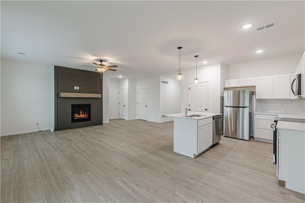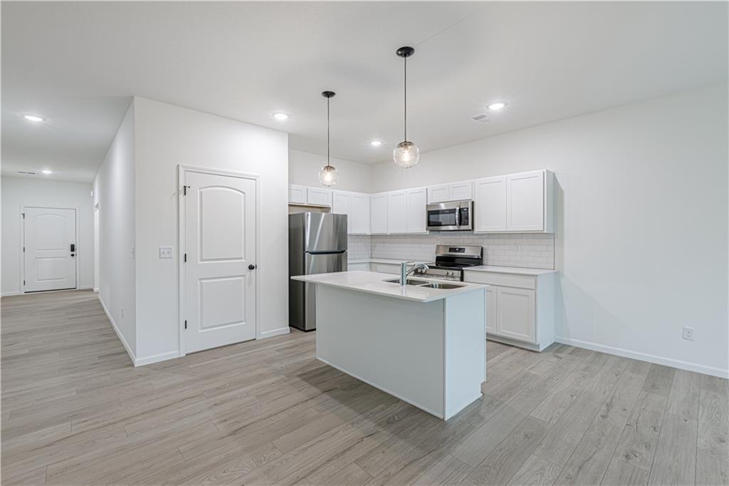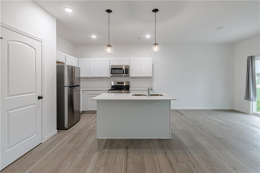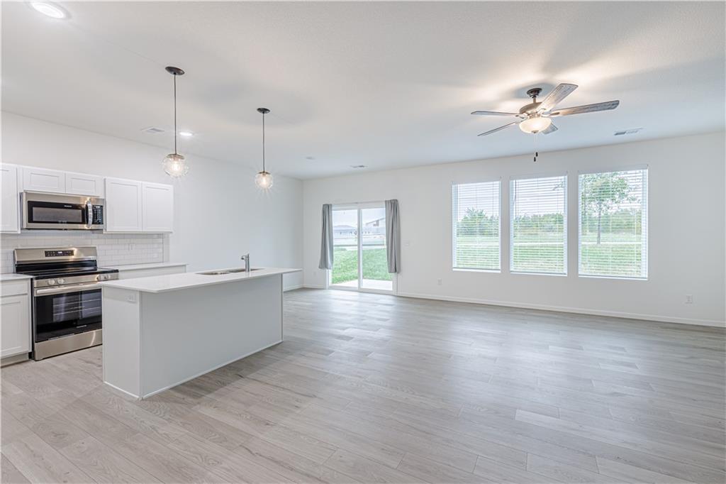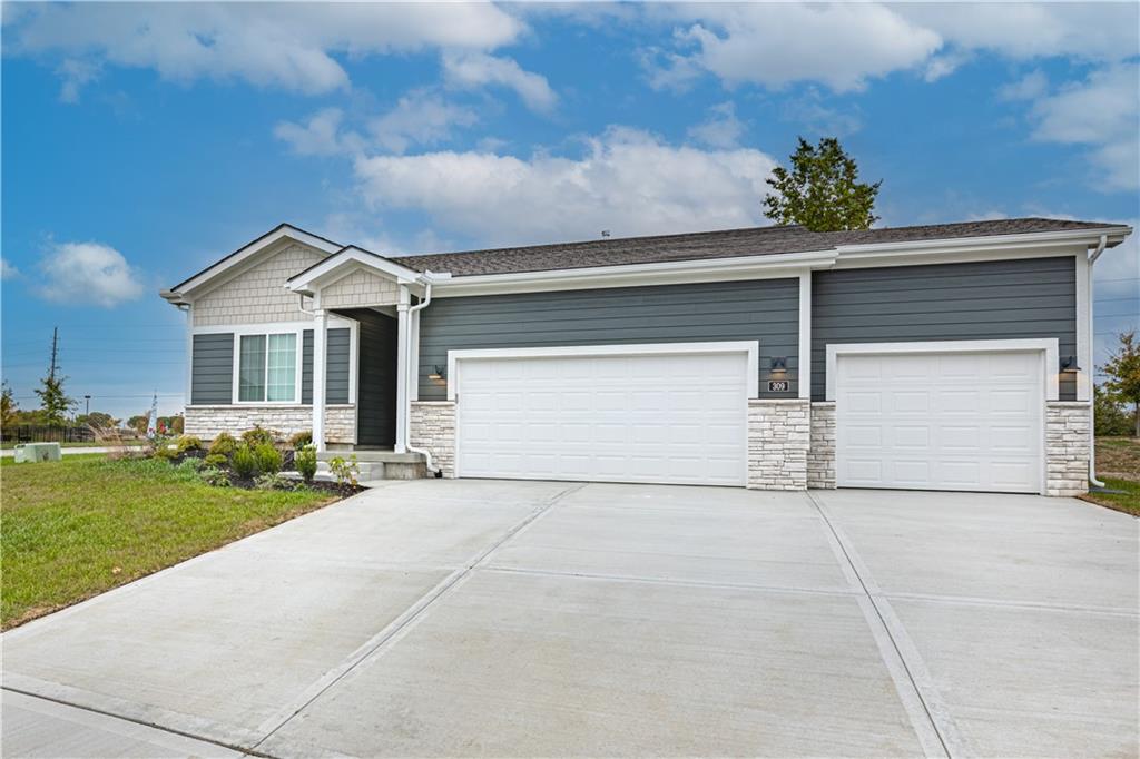 Welcome home to modern comfort and thoughtful design in this newly built home. Sitting gracefully on a corner lot within a cul-de-sac and accented with charming stone details, this 3-bedroom, 2-bath home feels bright, open, and inviting from the moment you step inside. Luxury vinyl plank flooring extends throughout the main living spaces, leading you into a spacious open-concept layout that’s perfect for everyday living and easy entertaining. The kitchen, dining, and living areas flow seamlessly together, creating the ideal spot to gather with friends, share a meal, or catch the next Chiefs game by the cozy fireplace. The kitchen itself shines with quartz countertops, crisp white cabinetry, a generous center island, and a walk-in pantry that makes staying organized effortless. Set apart at the rear of the home, the primary suite serves as your personal haven, featuring a roomy layout, walk-in closet, and a sleek en-suite bath with a walk-in shower. The two additional bedrooms at the front of the home offer endless possibilities — from a cozy guest retreat to a quiet home office or flex space for whatever your days demand. You’ll also appreciate the spacious laundry room, conveniently located near the bedrooms yet tucked out of sight, keeping household chores practical without disrupting the home’s flow. A 3-car garage provides plenty of storage, while the exterior’s curb appeal and quality craftsmanship make this home stand out. Come see how this beautifully designed home blends comfort, style, and functionality — it just might be exactly what you’ve been looking for. *Taxes in MLS was based off raw land. Taxes will be higher, but we don't know what that number is yet.