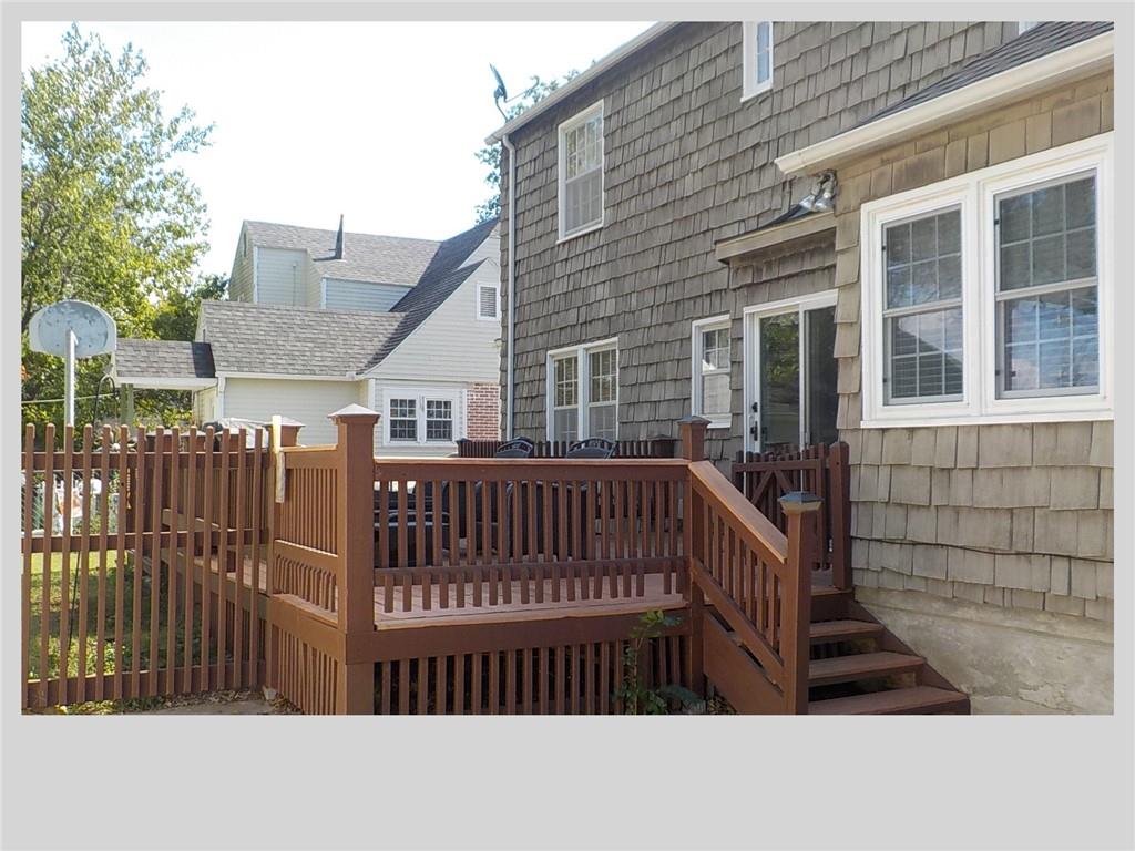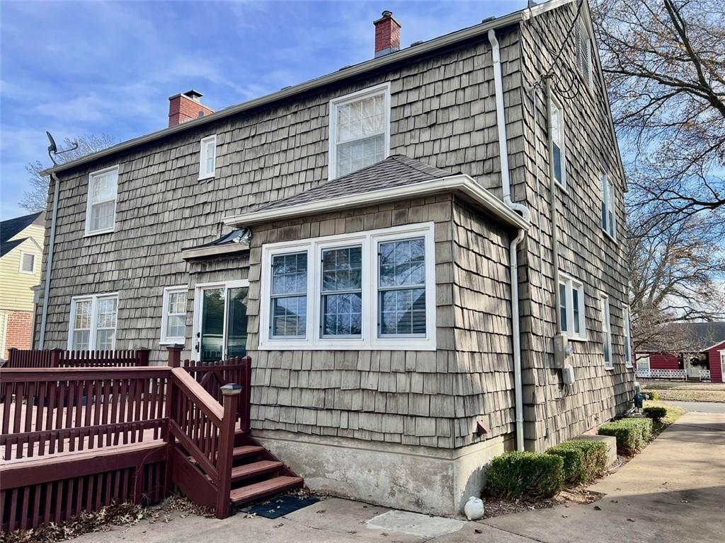 This beautiful two-story Colonial home features elegant details throughout the main floor, including wainscoting and a beautiful chandelier in the formal dining room, and crown molding in every downstairs room. The kitchen is equipped with extensive built-in cabinetry, a large pantry closet, a built-in coffee nook, and a built-in cooktop and range. Adjacent to the kitchen is a dining nook with a built-in china cabinet featuring glass doors. A sliding door leads from this area to a large deck overlooking the fenced backyard. The home also includes a convenient half-bath downstairs. The spacious living room features a cozy fireplace (currently gas logs, but convertible to wood-burning) and a door leading to a screened-in porch that can be enjoyed almost year-round. Please note: There is a small crack in the floor running west to east, currently covered by a rug. The lovely entry hall includes a vintage staircase and a built-in mail shoot. The unfinished basement, perfect for storage, has built-in shelving and houses the heating system. Note: There is surface water infiltration during heavy rain, which drains directly to the sump pump. Upstairs, you will find three large bedrooms and a full bathroom with a shower. The master bedroom features original hardwood flooring, a built-in sitting bench between the south-facing windows, two north-facing windows, and two walk-in closets. A door provides access to an upstairs patio with neighborhood views. The other two large bedrooms also offer generous space, one of which includes a large walk-in closet. The property includes an oversized, detached two-car garage with what used to be a maid’s quarters attached to the rear.
