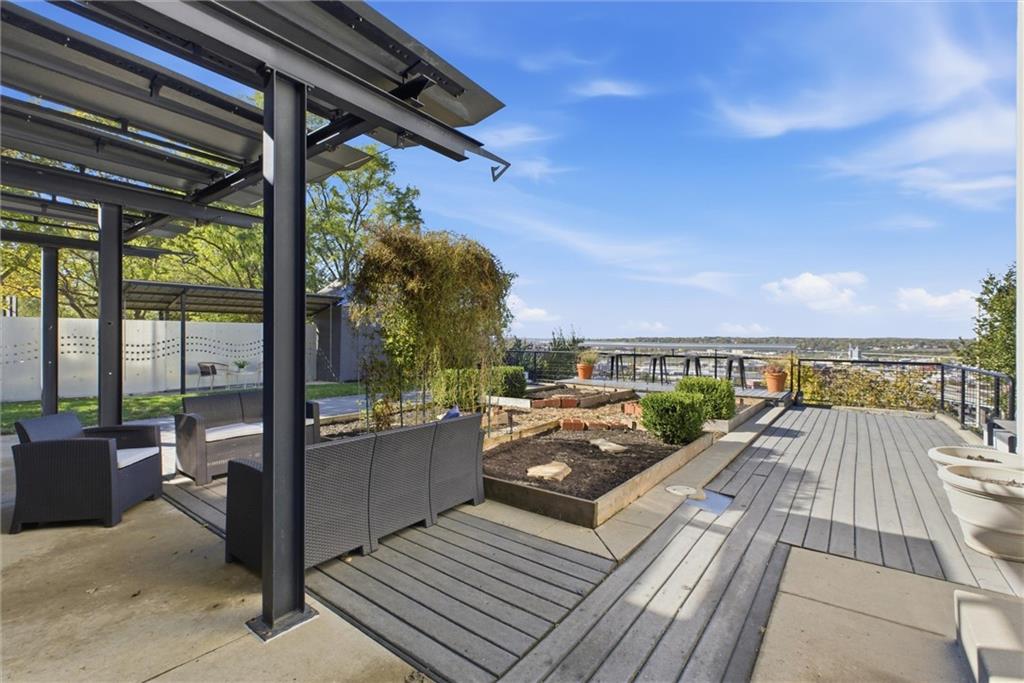 One of the most iconic Westside homes located on a cul-de-sac with amazing views. Cul de sac gives you plenty of privacy from local traffic and you have 3 city parks within 1/2 mile and no homes to the south. Situated on one of the highest points in Kansas City with amazing views. Enjoy sunsets on the back deck and early mornings under the pergola in the front. Exquisite custom ironwork from Austin Ironworks encase the outside perimeter of the property and you will find unique and amazing ironwork throughout the home. Heated radiant floors throughout the home and garage offer a level of comfort in the most severe winters. The garage has dual doors on the front and back which can open up to the outside area for an impressive entertainment area. Artistic design throughout the home includes a light fixture collaboration between Austin Ironworks and Dierk Van Keppel, a local glass artist. On the second floor you will find a steel and glass door designed by Austin Ironworks and Kathy Barnard, a local glass designer. Second floor family/game room with bar makes entertaining a breeze. Take the custom made spiral staircase to the "Eagles Nest" and exit to the roof for the best views of airshows, fireworks, sunsets, etc. This home has a custom designed garage AND a carport perfect for storing a camper or boat. Located conveniently to major highway access AND within walking distance to the eclectic shops and restaurants on the Westside AND the Kauffman Performing Arts Center.