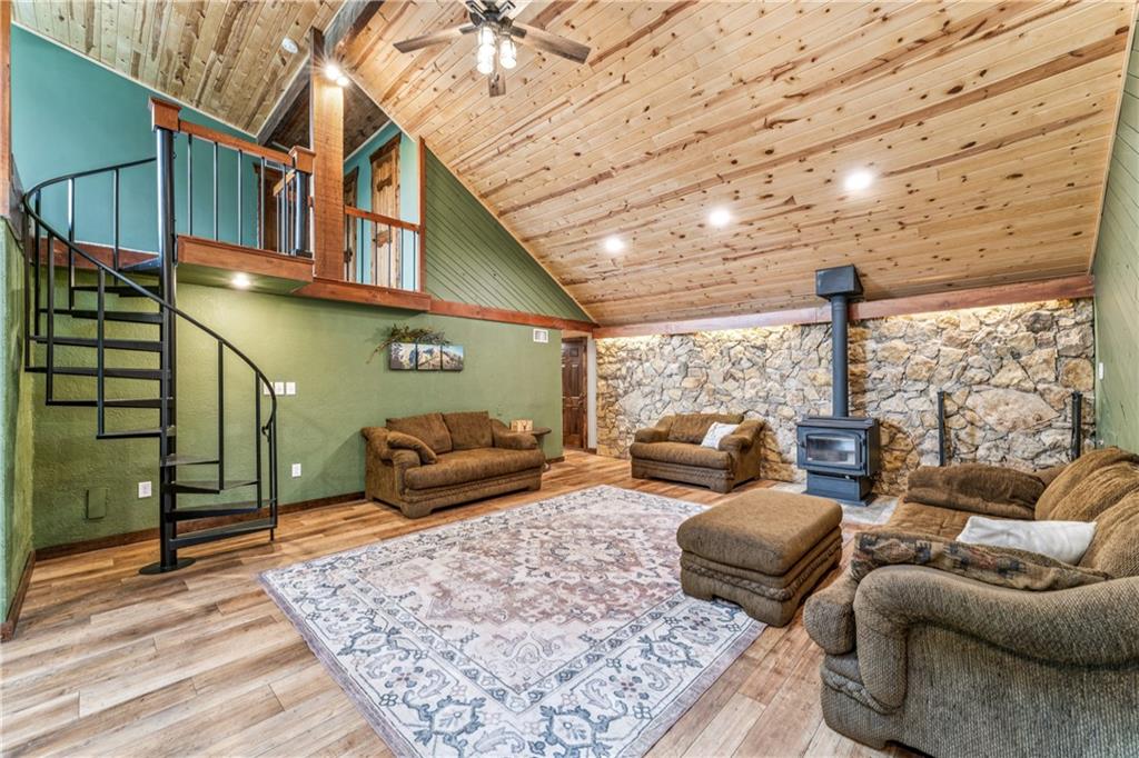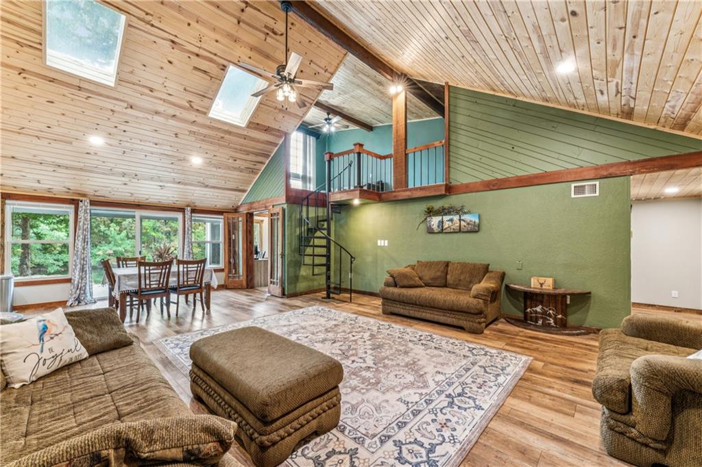This rare gem boasts a fully updated 3 bed 1.5 bath home on 11+ acres of beautiful wooded land, with lots of wildlife, including a stocked pond right off the front deck and atv trails running throughout. Perfect mix of city convenience with a location 5 minutes from town, a hospital, and 2 major highways. All while being outside city limits tucked back on a quiet private secluded road, large open yard with a firepit, cozy wood burning stove in the great room for the winter months. Unique features like vaulted ceilings, hidden entrance storm shelter, historic cave sight on the property that used to be part of the Wayside Rest land, driveway alarms and video surveillance so you always feel safe knowing who is coming down the driveway makes this a one-of-a-kind find you won't want to miss out on.