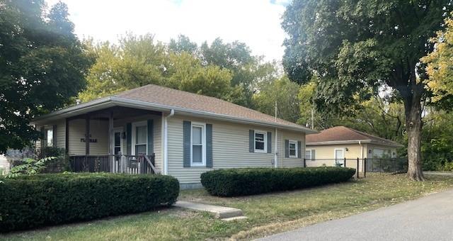 Move in condition home with vinyl siding and updated windows plus an oversized 2 car garage, large covered gazebo, & fenced backyard. Enter this home & find a room full of cabinets, pullouts, counter space, pantry, desk, file cabinet & hide away ironing board. Features: Eat in kitchen with appliances, main floor laundry room including washer & dryer, hardwood floors, built ins galore, plantation shutters, ceiling fans, no carpet, covered front porch. Impressive 2 car garage has heat, window unit, cabinets, work bench with electric outlets, vacuum system for woodworking, pegboard walls, & attic for storage. Home is well taken care of. Corner lot & low taxes.