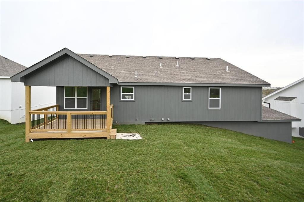 Stunning Custom Home with Modern Features and Inviting Spaces Welcome to your dream home! This exquisite property showcases an open floor plan, ideal for both entertaining and everyday living. The elegant kitchen boasts pristine white granite countertops, custom cabinets, and stainless steel appliances, all seamlessly flowing into the spacious living area centered around a beautiful fireplace. Step outside to discover a covered deck complete with a fan and light, perfect for enjoying serene views of the adjacent pasture. The rich feel of this home is accentuated by LVP throughout and vaulted ceilings enhancing the sense of space and light. The laundry room features stylish tile, while two generously-sized guest bedrooms offer plush carpeting, ceiling fans, and trey ceilings, creating a comfortable retreat for family and friends. The guest bath is tastefully designed, highlighting a tiled tub and a marble vanity that exudes luxury. Retreat to the master bedroom, a good-sized haven with carpet, a ceiling fan, and sophisticated trey ceilings. The walk-in master closet provides ample storage, while the en-suite master bath features elegant tile flooring, a double vanity with sleek black faucets, and a spacious tiled shower. The lower level invites you to enjoy a large fourth bedroom, complete with carpeting and a ceiling fan, alongside a substantial family room perfect for movie nights. The additional full bath boasts a tiled floor and a shower for convenience. Completing this remarkable home is an oversized three-car garage, providing plenty of space for vehicles and storage. The front of the house is adorned with beautiful stone, adding to the curb appeal with shutters to boost the look. Don’t miss the opportunity to make this luxurious yet inviting home your own! SIMULATED PHOTO'S NEW ONES COMING SOON - THE POND IS STOCKED FOR FISHING