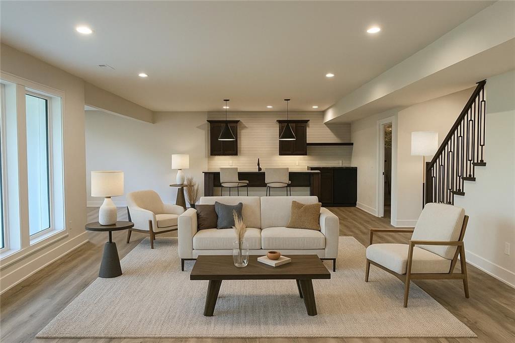 WaterCrest Landing | Sunset Views. Elevated Living. The Ultimate Cul-de-Sac Escape Backing to the Lake! Don't miss this opportunity for a private, retreat-style home located on a serene cul-de-sac lot! Forget the maintenance—this is all about lifestyle. This premium lot is a nature lover's dream, offering unrivaled privacy backing to mature, lush trees and showcasing gorgeous lake views. Start and end your day on the expansive, covered deck—the perfect private extension of your living space for entertaining, grilling, or simply enjoying the peaceful, wooded scenery. The interior is designed for modern living, but the finished lower level truly elevates the home. Featuring a desirable walk-out design, this space is perfect for a full-size second family room, an entertainment hub, or an in-law suite, providing abundant additional living space with easy access to the backyard. Rarely does a home offer this perfect combination of a private, nature-backed setting, cul-de-sac tranquility, and functional, finished walk-out space. This is one you need to see!