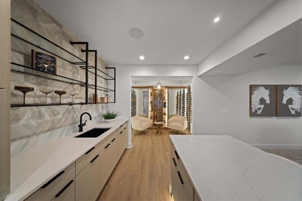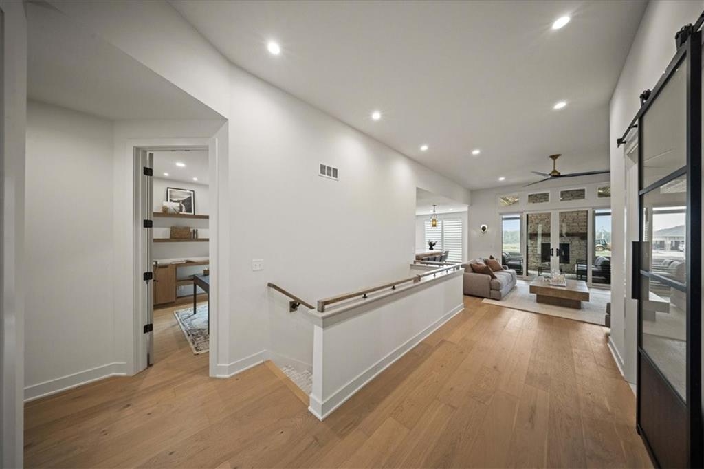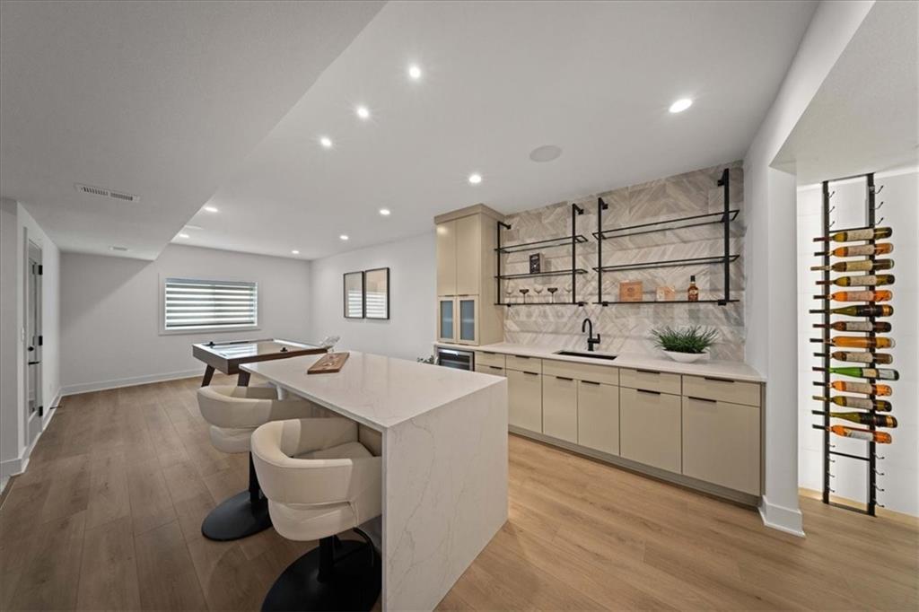 The "Somerset" reverse by Elevate Design + Build MODEL HOME! This elegant contemporary reverse plan with walk up/out basement has it all. Open spaces with tall 8' interior doors throughout the main level. 2 bedrooms on the main floor AND a true dedicated office as a bonus. The entertainer's kitchen has a walk in pantry and butler's pantry (prep area & additional sink). Primary bedroom with luxurious spa like bathroom. Lower level family room with wet bar and 2 additional bedrooms and 2 bathrooms (one ensuite with bedroom), topped off with a sophisticated wine room! Gorgeous covered deck for outdoor entertaining and so much more! Rodrock Development's newest community, Stonebridge South, offers the exceptional lifestyle for which the greater Stonebridge neighborhood is renowned, but this new community bestows homeowners the added benefit of quiet, private streets and a protected green space. This incredible new community has no “through streets”—meaning most homes are situated on cul-de-sacs and no unnecessary traffic mars this beautiful community. A nature habitat runs through the development and can never be built upon, offering additional privacy and all the benefits of greenspace and nature. Amenity package provides a wonderful lifestyle in an amazing location with 4 Pools, 2 Club Houses, Work Out Equipment, Sport Courts and Walking Trails! Heritage Park's 1,234-acres park is close by and offers a dog park, lake, park shelters, athletic programs, disc golf, softball, football, and soccer fields, 18-hole Golf Course and driving range! Spring Hill schools. Taxes and square footage are estimated, Buyer or Buyer's agent to verify. MODEL HOME IS NOT FOR SALE. List price is base price of Somerset plan and does not include upgrades showcased in the model home.