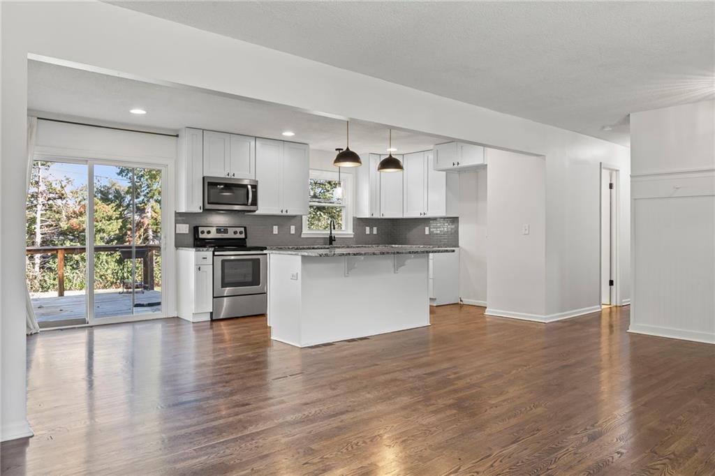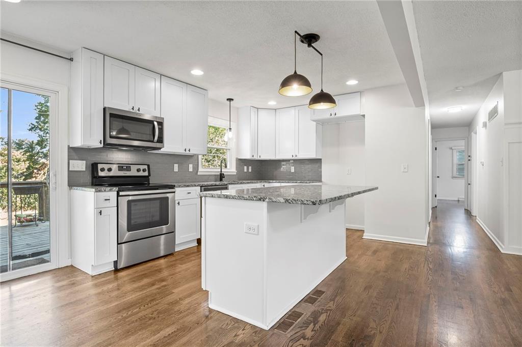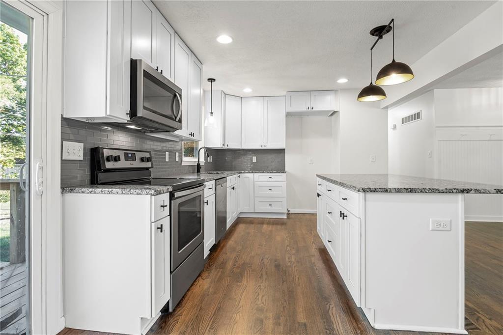 Welcome to this beautifully updated raised ranch in the highly sought Cherokee Hills neighborhood. This home offers approximately 1,600 sq ft of living space with an open floor plan, perfect for modern family living. The spacious main level features wood floors throughout, a large kitchen island, and granite countertops that anchor the cooking space with stainless steel appliances. The family room has a new contemporary hearth with a fireplace and perfect space for tv. Nicely equipped with mood lighting. With 3 bedrooms and 2 1/2 nicely updated bathrooms, the layout is both practical and inviting. Downstairs, the finished basement expands your living options with new carpet, a contemporary wood-burning fireplace in the family room, and generous space for media, play, or relaxing. Step outside to enjoy the large deck off the back, opening to a fenced backyard — ideal for entertaining, children, or pets.