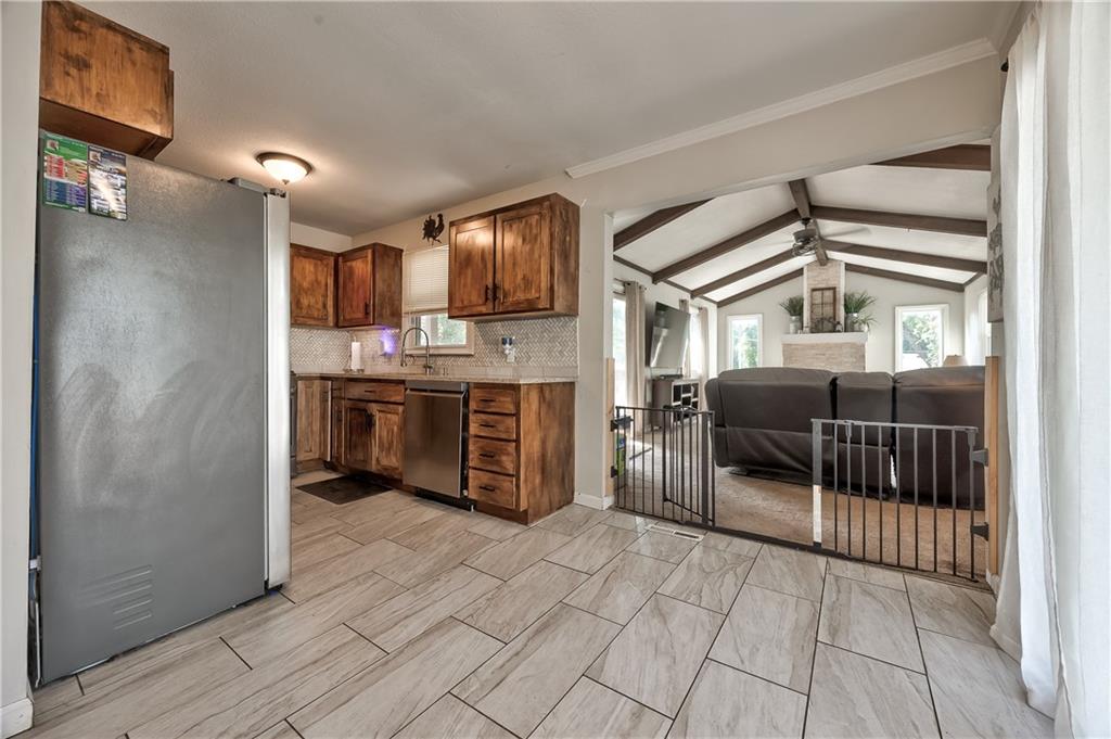 Welcome to this adorable, updated home in the heart of Bonner Springs! This fantastic 2 bedroom, 2 full bath home features an expansive garage that could be used as a 2 car tandem garage. There is so much space for cars, toys, storage and more! Don’t let the size of the front fool you either! This home has so much living space including a huge, vaulted family room with stone fireplace – perfect to cuddle up next to or read a book on a cool fall evening. The family room walks out to a covered deck great for all of those fall game day BBQ’s. There are endless possibilities with the formal dining room and/or living room just off the entry. The updated kitchen features recently stained cabinets, granite countertops, a modern tile backsplash and stainless steel appliances. Brand new finished lower level with recreation room/additional family room and full bathroom...all featuring new LVP flooring. Brand new exterior paint. Newer A/C, newer electric panel and thermal windows. Located just minutes from charming downtown Bonner Springs – close to schools, local dining, shopping and the vibrant Olde Mill District.
