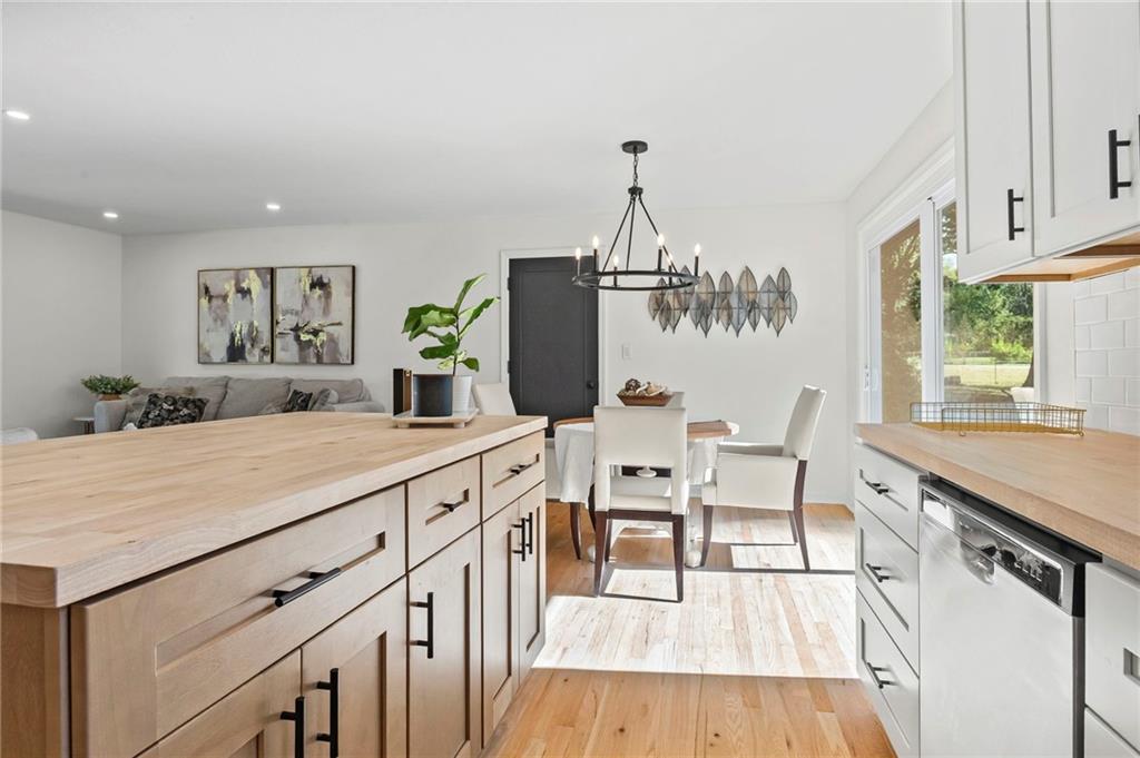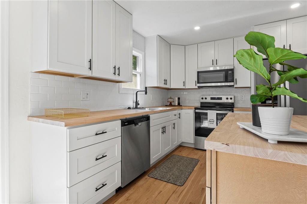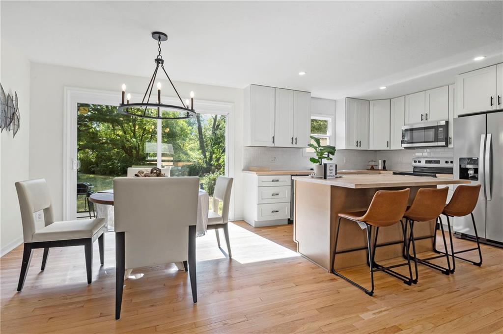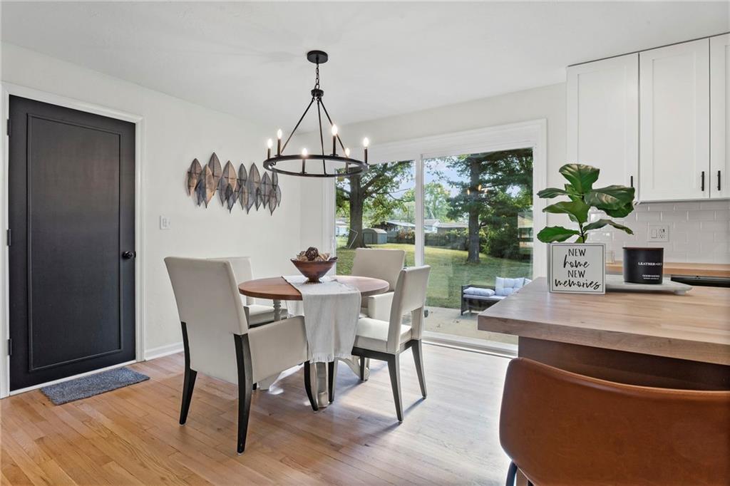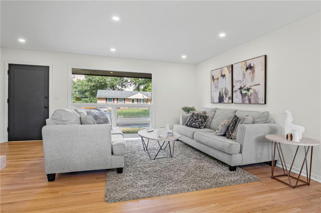 MOVE-IN READY, CHARMING RANCH IN RAYTOWN! Welcome home to this delightful 3 bedroom, 2.5 bath ranch nestled on a spacious lot in Raytown. This home offers a beautiful, open and functional layout, warm finishes and a finished basement to expand your living options. Step inside to discover refinished hardwood floors and fresh paint throughout. Sunlit living room flows into a NEW kitchen, equipped with ample cabinetry, island, butcher block countertops, stainless steel appliances and modern fixtures. Adjacent dining area is perfect for entertaining. Primary suite features a private half bath! Two additional bedrooms and full bath are beautifully appointed. Downstairs, the finished lower level includes family room, rec area, office/flex space or non-conforming 4th bedroom, 2nd full bath and laundry area. Outside, enjoy a spacious yard—perfect for entertaining or relaxing—complete with concrete patio. One-car attached garage adds convenience and extra storage. This home is ideally located near shopping, schools, and major routes for easy access to Kansas City and surrounding amenities. Don’t miss this rare opportunity to own a turnkey ranch in Raytown! WELCOME HOME!