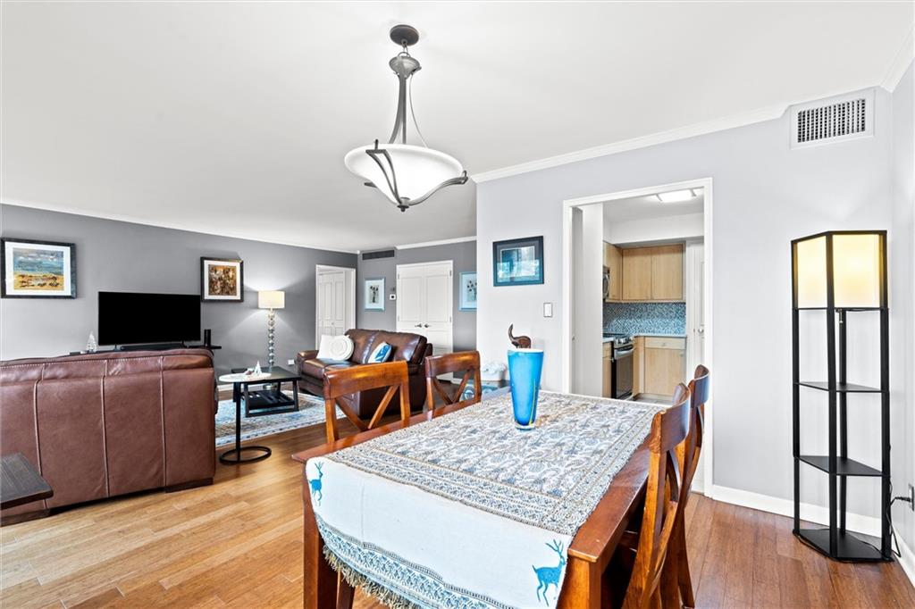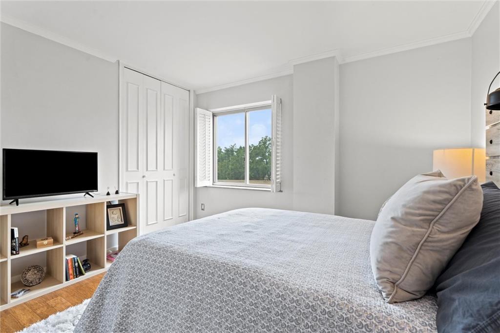 Everything you are looking for, including a fantastic price, at this 2 bedroom w/ covered balcony unit at Oak Hall condominiums! Nestled between the Plaza and Nelson-Atkins Museum, and direct view of Southmoreland Park. Move-in ready, so just in time to walk or hop on the street car (one block to the west), to enjoy all the upcoming holiday entertainment this fabulous area has to offer. Numerous upgrades over the past 5 years; kitchen renovation, bamboo flooring throughout, primary suite bathroom remodel, electronic shades and plantation shutters, all new plumbing stacks throughout the building, new building "chiller" system. Convenient building amenities including loading dock, furnished rental units for guests, secure parking, media room w/ kitchenette, laundry room, and exercise facilities. Oak Hall also offers 24/7 door and security services, daily trash pick up from unit hallway, maintenance changes furnace filters and smoke detector batteries