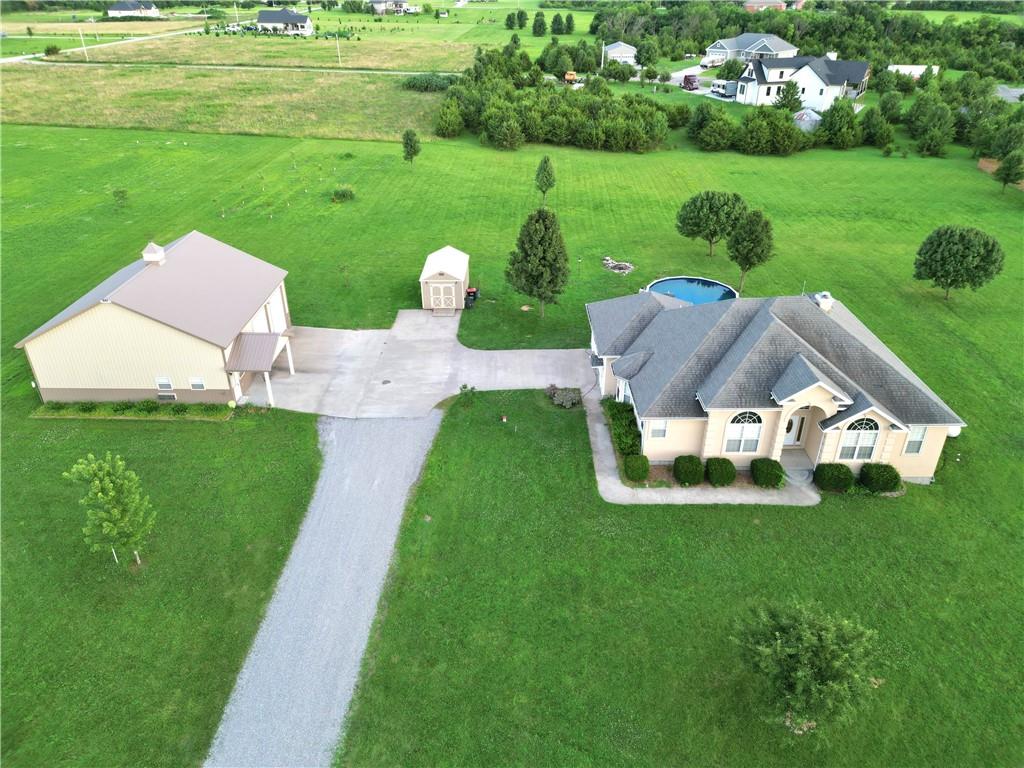 Welcome to your dream property! This beautiful 4-bedroom plus 2(non conforming rooms), 3-bathroom home is nestled on 3 acres at the end of a quiet dead-end road, offering the perfect combination of privacy, space, and versatility. Step inside to an elegant entryway featuring soaring ceilings, arched windows, and gleaming wood floors. The spacious main level boasts an open layout with a cozy fireplace, formal dining area, and a kitchen equipped with custom cabinetry, granite countertops, and a stylish tile floor. Downstairs, you'll find a large recreational/living area—perfect as a guest suite, entertainment space, along with two non-conforming bonus rooms ideal for a home office, gym, playroom, craft room, or storage. Outside, enjoy warm summer days in your above-ground pool. The impressive 40x40 shop offers endless potential with its finished accessory dwelling space and full bathroom—perfect for use as a workshop, guest quarters, or even a rental opportunity. A utility shed provides additional storage for tools or outdoor equipment. Schedule your private showing today and experience everything this exceptional property has to offer!