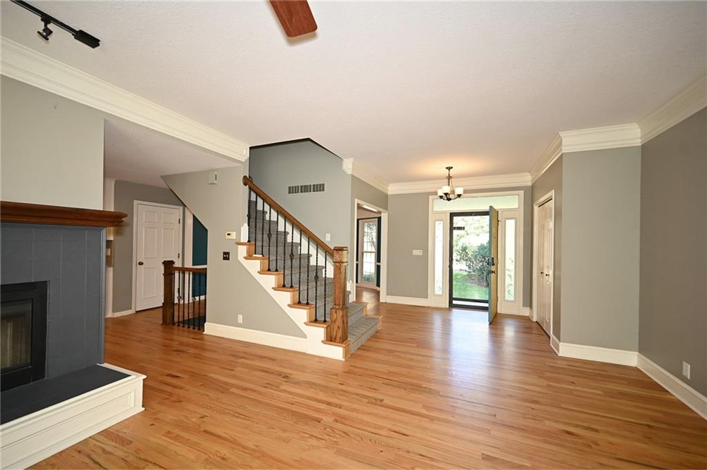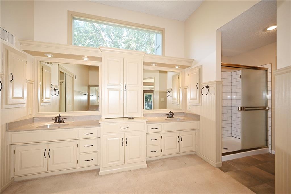 This home is an oasis! Located in the heart of the Northland close to shops and highways, with a ton of space, a primary bedroom suite with an additional raised seating area including a see thru fireplace into the jetted tub and master bathroom. The updated kitchen has granite and a gas range along with another see thru fireplace shared with the main level living room. There is also a formal dining room, finished basement with additional workshop and hobby room that is stubbed for another bathroom if wanted. The back deck has a pergola and overlooks a gorgeous treed lot. Take a look inside and this home will WOW you!