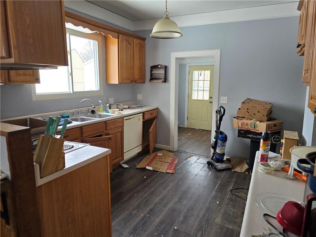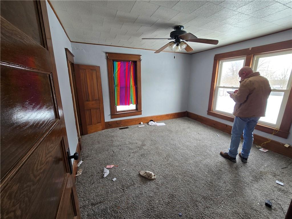 Small town setting with big upside potential. This Craftsman-style 4 bed / 1 bath home sits on a large corner lot in a quiet rural community within walking distance to the school. Previously a solid family home, it features a spacious layout with a large living room open to the dining area, a main-floor primary bedroom with a double closet, and main-floor laundry off the kitchen. Upstairs includes three additional bedrooms and a separate toilet room, offering a strong footprint for added value. The property also includes a 21x24 detached garage with built-ins, a garden shed, and a large concrete slab off the back deck (formerly used as a basketball court). Important: The home is currently in distressed condition and will require significant repairs and updates. However, major exterior improvements were completed in the past, including exterior paint, some flooring updates, and deck board replacement — giving a starting point for the right buyer. This is a value-add opportunity ideal for investors, flippers, or buyers looking to build equity. Strong layout, large lot, and functional outbuildings make this one worth a look. Seller is highly motivated and needs offers immediately. Cash or rehab financing recommended. Sold as-is.