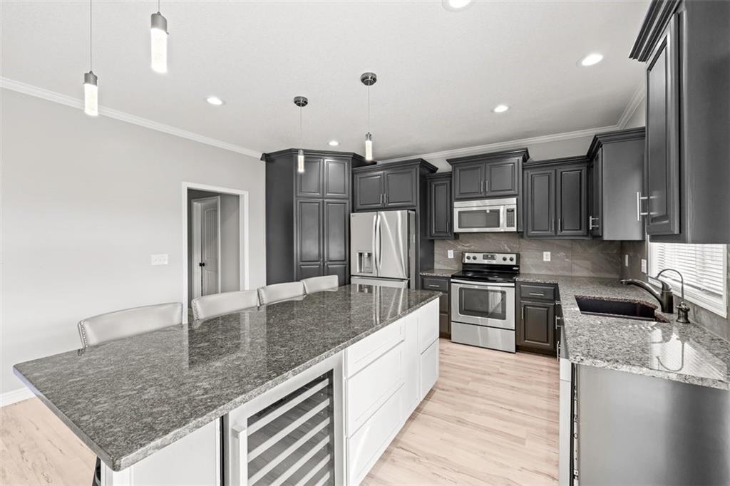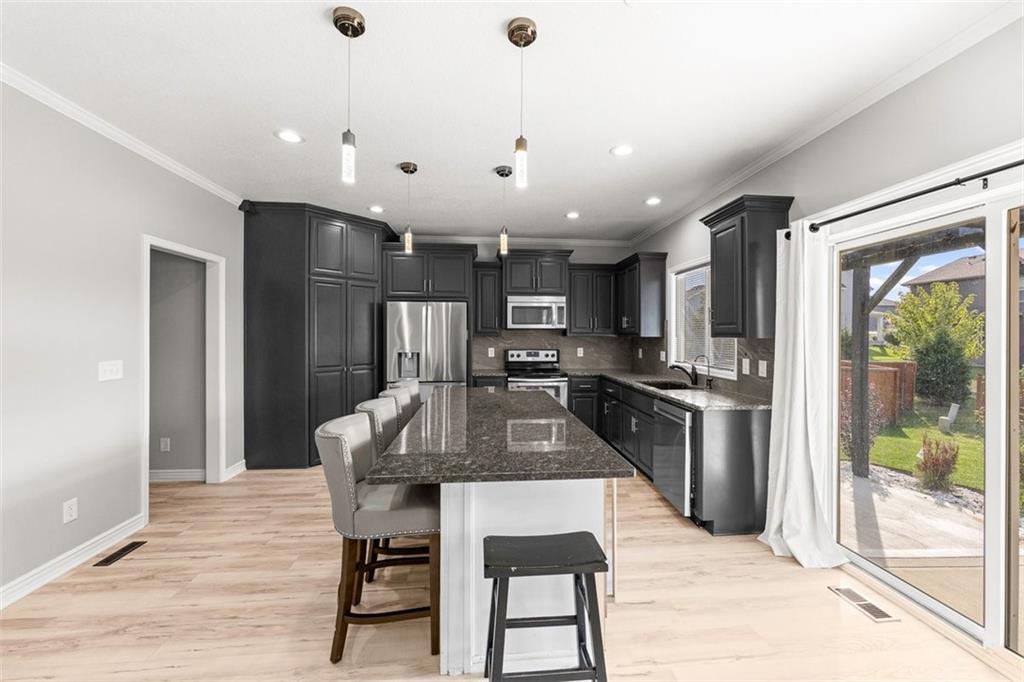 BEAUTIFUL, CLEAN and MOVE-IN READY!!! Recent tasteful updates include exterior paint, landscaping, enlarged patio with pergola, expanded driveway, garage painting, interior paint on ceilings, walls and trim and luxury vinyl plank floors. Upon entry, you will notice how beautifully the sunlight filters through the back of the home, especially with a light neutral color palette accented with modern gray cabinetry and fireplace. The heart of the home features an open concept great room, formal dining room and eat-in kitchen with island. Kitchen has been improved with larger island that has storage and beverage fridge, ceramic tile backsplash and granite countertops. Lighting has also been updated on the interior and exterior of the home. As you make your way up the switchback staircase there are 4 bedrooms, 2 full baths and a cozy office nook and conveniently placed laundry room. The 4th bedroom has a hidden playroom that could also be used for storage space. The lower level has another conforming bedroom or office and bathroom with a 6th non-conforming bedroom that could also be a media room or home office. Adjacent to that is a small room that was also used as a home office. Across the hall there is a utility room with additional storage plus a storage closet. This home has been loved and is nestled in a wonderful neighborhood with low HOA fees. Conveniently located near award winning schools and your choice of many places to shop. Come take a look! This could be your Home Sweet Home!