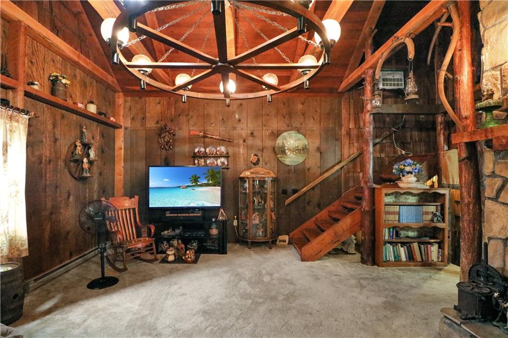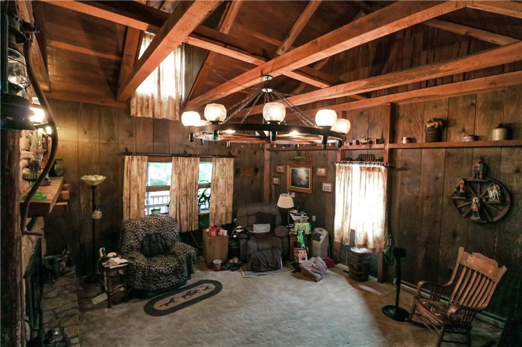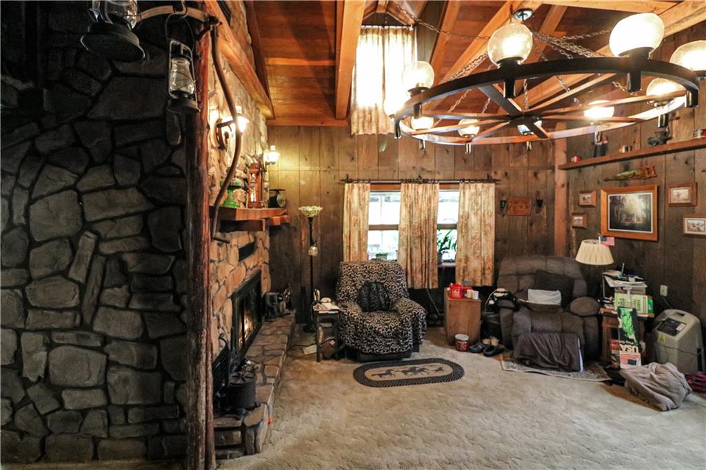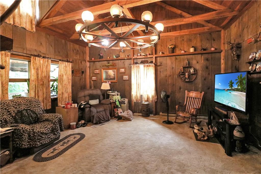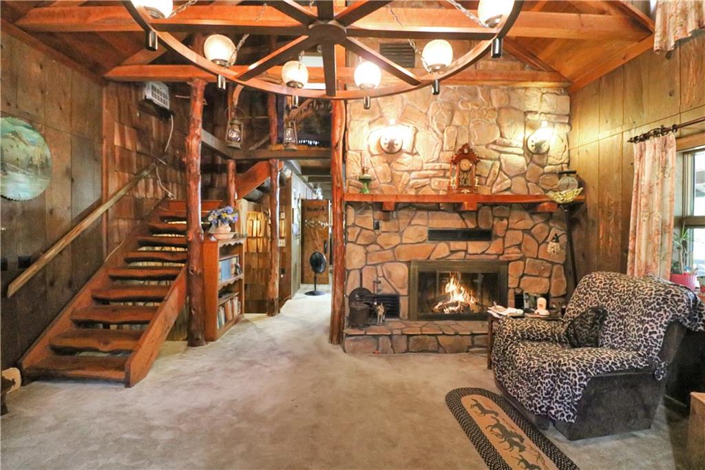 Rustic Charm meets classic comfort on 6 Acres with private stocked lake! Discover a rare opportunity to own this beautiful 3-bedroom, 2-bath Western-style Cabin nestled on 6 serene acres. At the heart of the property lies a stunning 2-acre manmade lake, fully stocked and perfect for peaceful mornings or weekend fishing. Step inside and be greeted by a unique wood interior featuring a striking spiral staircase and handcrafted custom kitchen cabinets. The home exudes warmth and character throughout, blending rustic charm with thoughtful details. Outdoors, you'll find a variety of fruit and flowering trees, space to roam, and endless potential for gardening, relaxing, or entertaining. A spacious 4-car garage—previously used as a woodworking shop—provides ample room for projects, storage, or hobbies. Additional features include a brand-new roof and gutters, as well as two septic systems for added convenience and capacity. Whether you're seeking a private retreat or a place to create your dream homestead, this one-of-a-kind property offers it all.