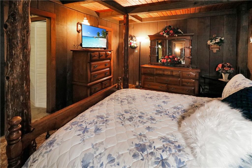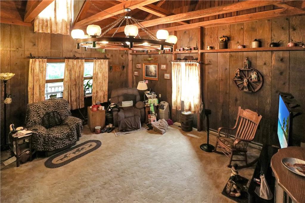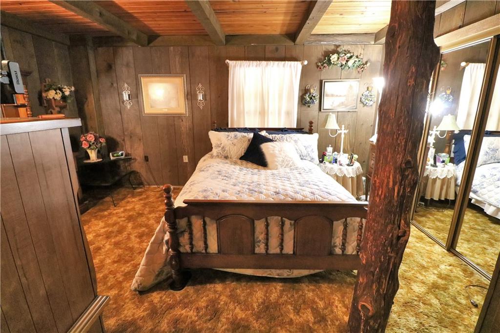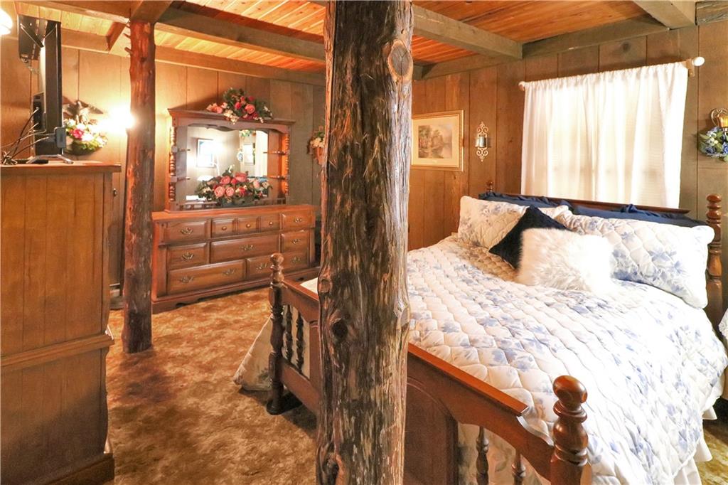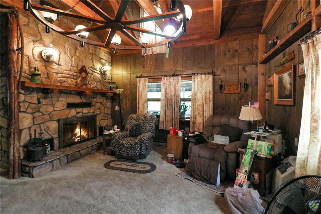 Rustic Charm meets classic comfort on 6 Acres with private stocked lake! Discover a rare opportunity to own this beautiful 3-bedroom, 2-bath Western-style Cabin nestled on 6 serene acres. At the heart of the property lies a stunning 2-acre manmade lake, fully stocked and perfect for peaceful mornings or weekend fishing. Step inside and be greeted by a unique wood interior featuring a striking spiral staircase and handcrafted custom kitchen cabinets. The home exudes warmth and character throughout, blending rustic charm with thoughtful details. Outdoors, you'll find a variety of fruit and flowering trees, space to roam, and endless potential for gardening, relaxing, or entertaining. A spacious 4-car garage—previously used as a woodworking shop—provides ample room for projects, storage, or hobbies. Additional features include a brand-new roof and gutters, as well as two septic systems for added convenience and capacity. Whether you're seeking a private retreat or a place to create your dream homestead, this one-of-a-kind property offers it all.