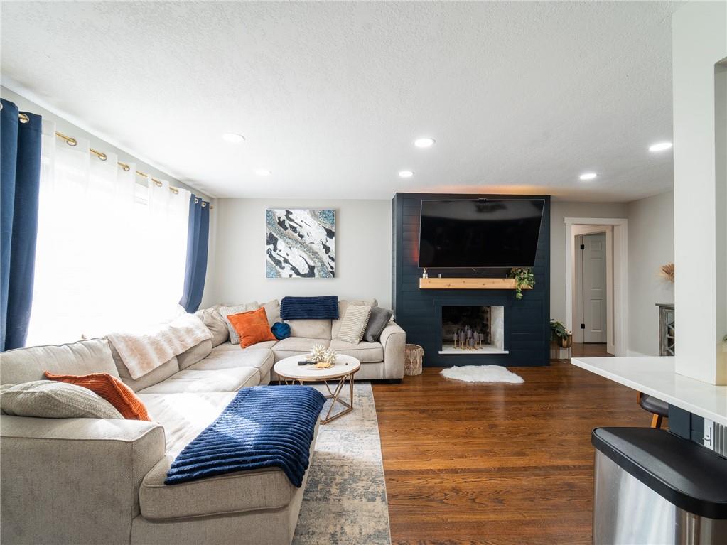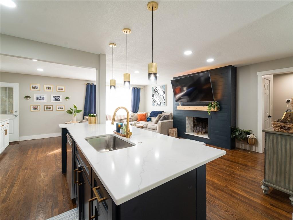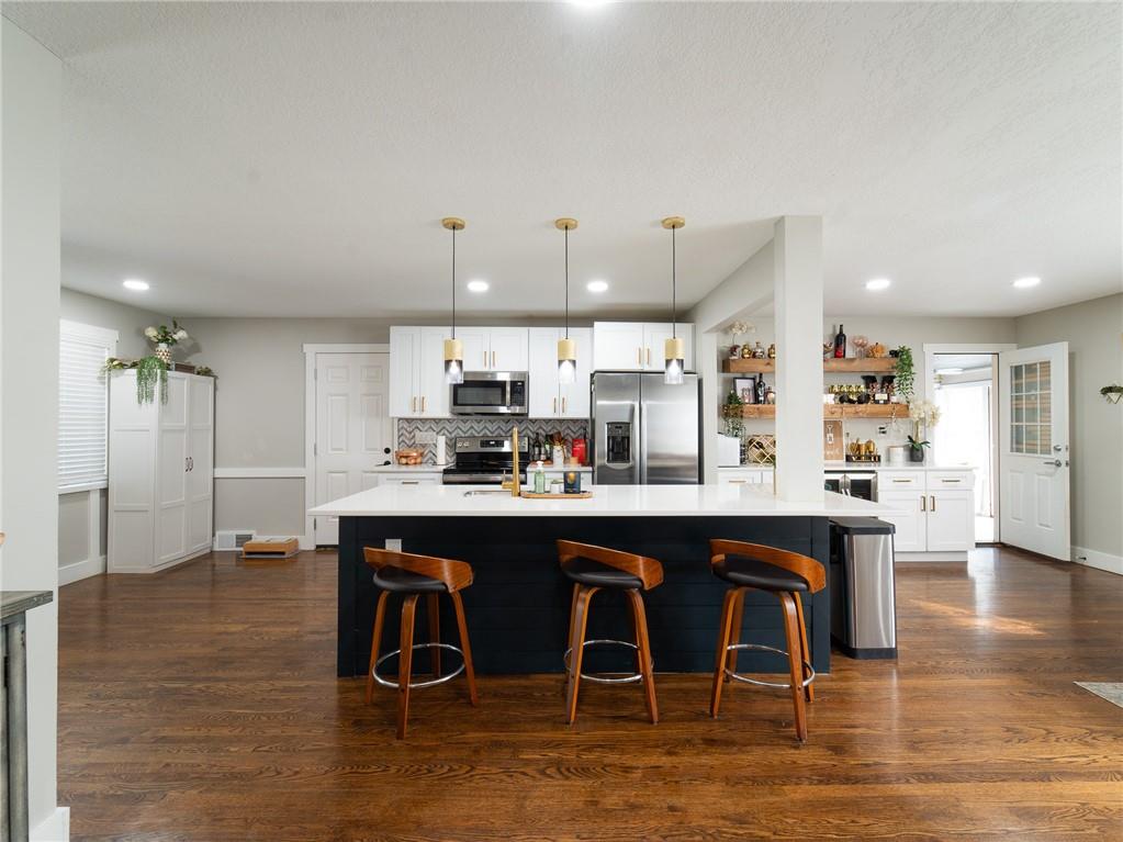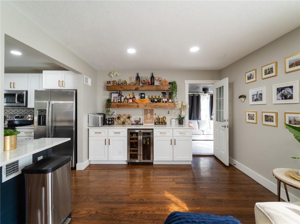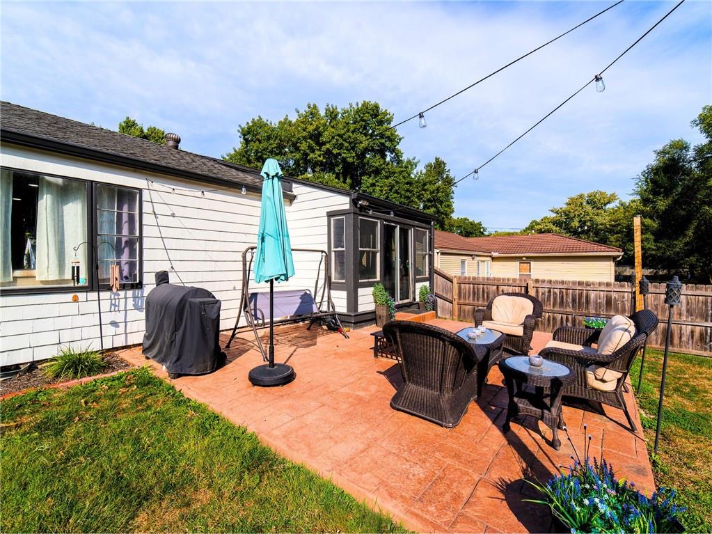 AGGRESSIVELY PRICED WITH QUICK POSSESSION AVAILABLE! Completely remodeled in 2023, this 3-bedroom, 2-bath home combines modern design with comfortable living. The open layout features hardwood floors, a custom fireplace, and a beautiful kitchen with new cabinets, upgraded appliances, and a wet bar with a wine cooler, beverage fridge, and extra storage. The remodeled sunroom offers a bright, inviting space for entertaining or relaxing. Outside, a large textured concrete patio with bistro lights and a privacy fence sets the scene for evenings spent with friends or quiet mornings with coffee. The unfinished basement adds potential for expansion and value-add in the future. Protected by a newly installed security system, every detail has been carefully updated to create a home that feels fresh, stylish, and modern. Seller offering NEW WINDOWS or CUSTOM INTERIOR PAINT with approved offer! Ask Listing agent for details.