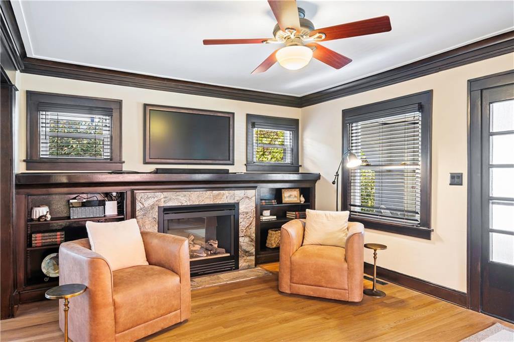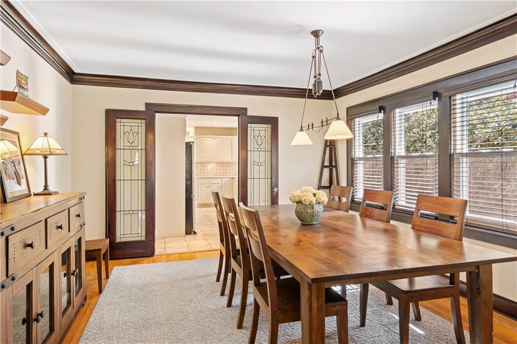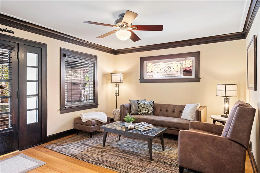 This house has just about everything you would want in a Brookside home...and MORE! A cozy front porch welcomes you inside to the bungalow floorplan: two bedrooms and full bath on the first floor; third bedroom, full bath and bonus space on second level. You will appreciate the original 1924 charm here: (gas) fireplace with bookshelves on either side; hardwood floors, crown molding, and stunning leaded glass doors in the spacious dining room lead you into the large, eat in kitchen. First floor bath recently completely remodeled! Upstairs, a sunny bonus room and updated bath connected to the third bedroom-check out the original Craftsman doors on the closets! Roof & HWH less than ten years old. Newer windows. Outside, the wide private driveway leads to a an oversized 22'x39' garage with it's own electrical box, and connections for gas and ac. Think of the possibilities here: man cave or she shed, kids' playroom, rec room, extra storage. This house sits in an ideal Brookside location--grocery store, bank, restaurants, cafes and shops just across the street!! The popular Trolley Track Trail is nearby as well. If you want to live in Brookside, this may be the ideal home for you!!