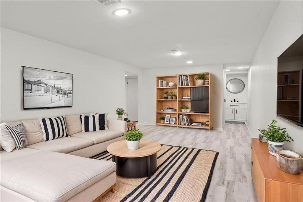 Completely renovated inside and out with everything fresh and new! This beautiful, open ranch is furnished with high-end finishes, a neutral color palette, and so much space to enjoy inside and out. Gorgeous curb appeal invites you in with freshly painted brick, wood shutters and a brand new front landing. Inside, refinished hardwoods run throughout the main level including all of the bedrooms. The open but cozy living room will have you wanting to curl up by the brick fireplace and enjoy views of the new back deck and fenced yard through the sliding glass doors. The kitchen is complete with fresh white cabinets, granite countertops and new appliances. Formal dining offers plenty of space for hosting gatherings, or expanding your living space. Three nicely sized bedrooms including a primary suite with a private full bath complete the main level, as well as a large guest bath that is all brand new. Downstairs, the full finished basement has a second large living space with a beautiful wet bar, a well-appointed laundry room, a fourth non-conforming bedroom with egress (just add a closet!), and a third brand new full bath. Located in lovely Red Bridge with easy access to highways, parks, hospitals, schools, popular kids activities and more. Welcome home!