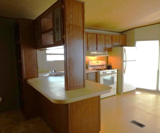Singlewide Manufactured 2 Bedrooms, 1 Bath, a 12x16 (192 sq. ft.) room addition with 2 doors and windows was added to the 900 sq. ft. home. Carport in the yard, root cellar or tornado shelter appears to be in good condition is a bonus. Home has been well taken care of with a kitchen island, bow window with almost new mini blinds, stove and refrigerator are in clean and in good condition. Pantry also. The bathroom in the hall has been remodeled with a fiberglass walk-in shower with many grab bars. Washer and dryer are in the hall with a shelf above. 2023 HVAC System. Propane tank that runs kitchen range and the furnace is owned by the property. Electric Water heater in the master bedroom closet was installed in 2022. 100 amp Breaker box in Master Bedroom. Outside was painted in 2025, Most of inside painted in 2023. Roof in 1998. Mature Trees, Garden Spot, Lot is 130x140.