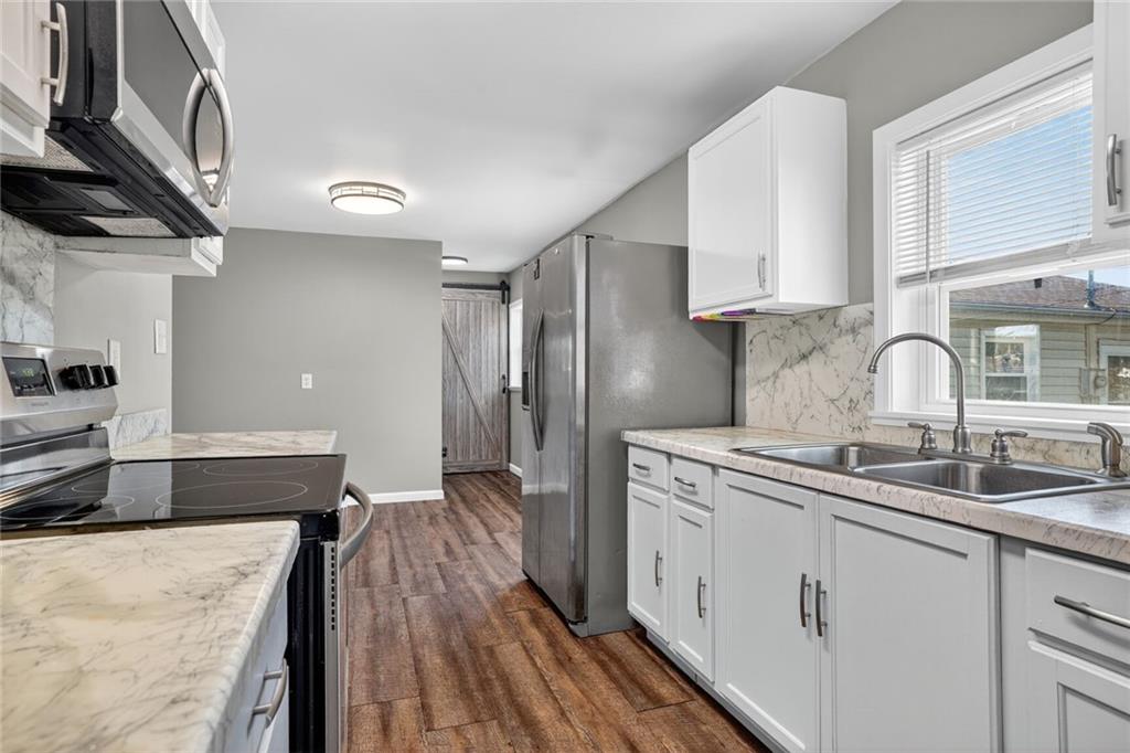 YOU HAVE ANOTHER CHANCE TO OWN THIS ADORABLE 1960'S RANCH! previously remodeled and move in ready! Easy care laminate flooring throughout, with a spacious living room featuring a big picture window and a wood burning fireplace. The kitchen has white cabinetry and nice, stainless appliances. The laundry is conveniently located off the kitchen, sharing a barn door with the spacious pantry. The three bedrooms are light and bright with nice size closets and spacious rooms. The hall bath has been remodeled with a large tub and newer cabinets! Lots of new here with a new roof and HVAC system all in the last 3 years! An attached garage and a side deck finish off this great home. Set on a corner lot with lots of room to play or entertain. Just minutes from downtown Cameron, this is a must see!