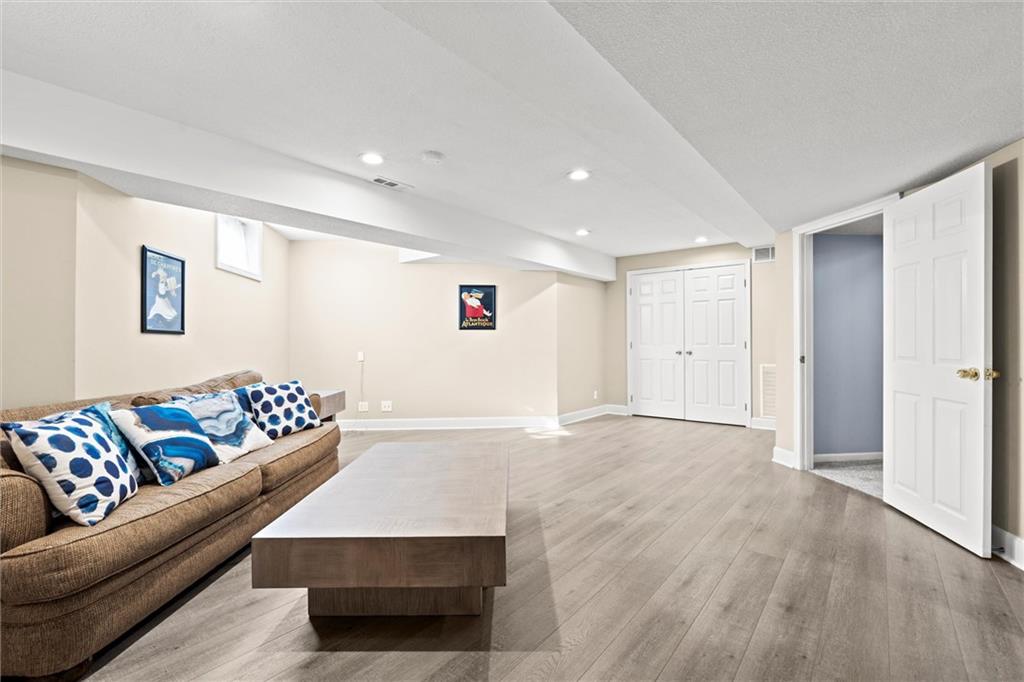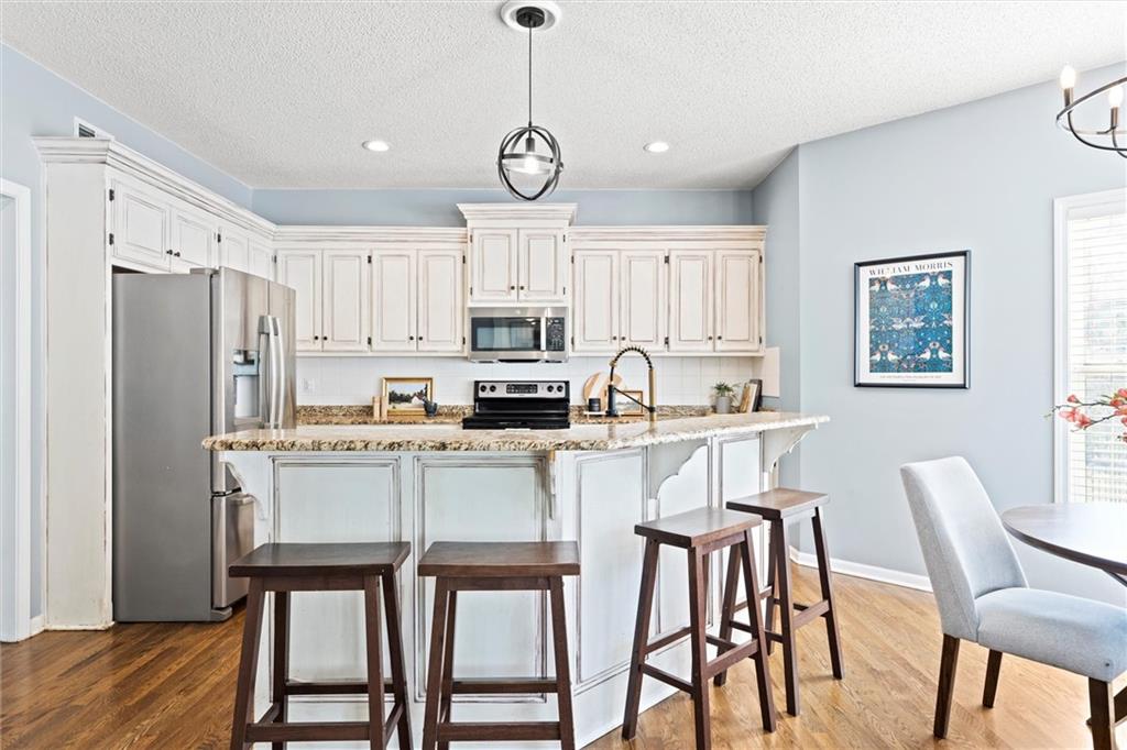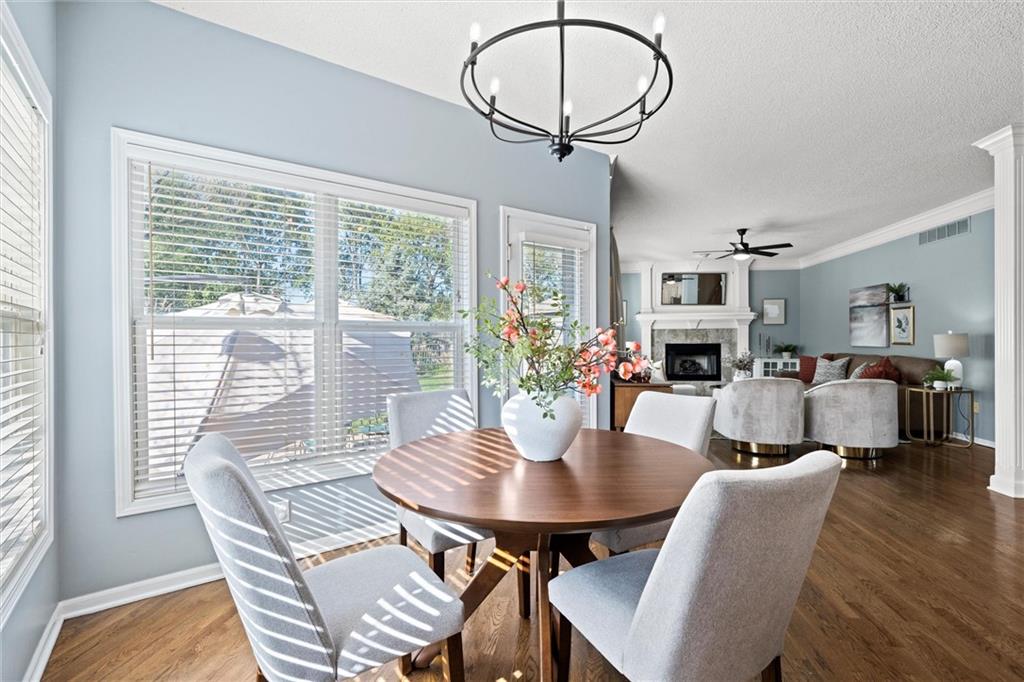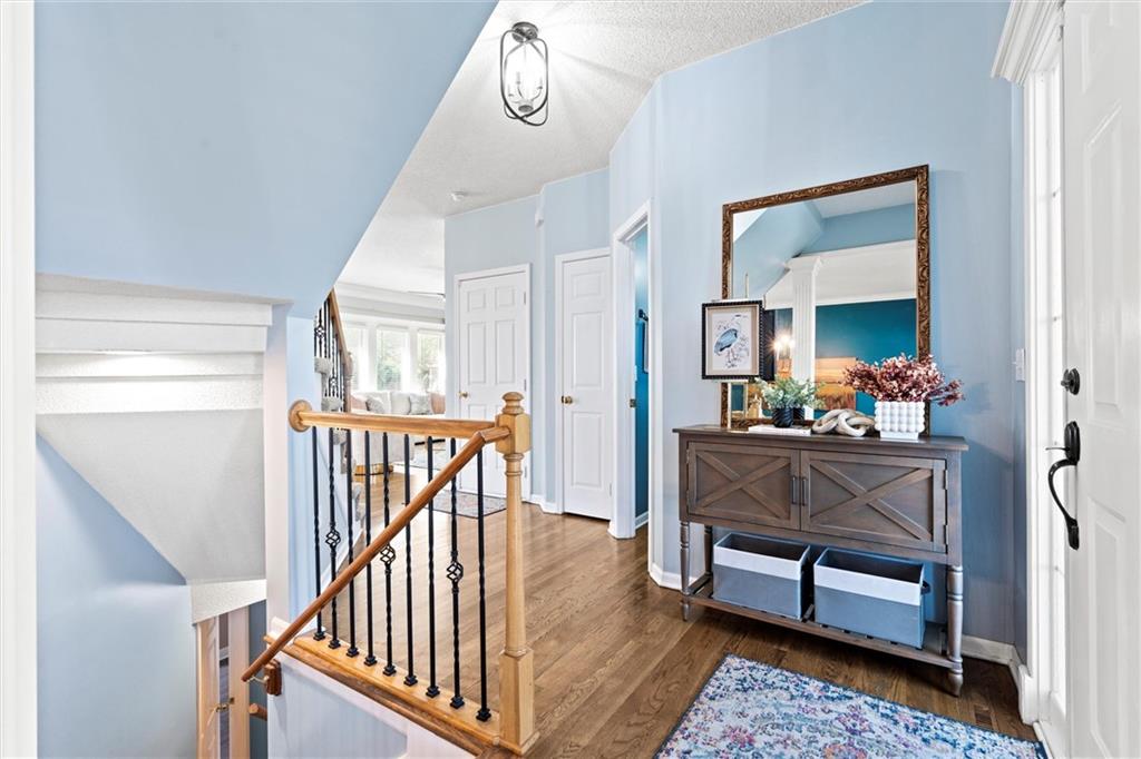 Welcome to 14708 Walmer Street! This beautifully cared-for home is nestled in Regency by the Lake, located in the heart of Overland Park. Thoughtful updates, generous living spaces, and a private backyard retreat make this home a true stand out. Step inside to find a light-filled floor plan with hardwood floors and elegant architectural details. The formal dining room’s rich teal walls and wainscoting create a striking first impression, while the open kitchen and hearth area make everyday living feel easy and connected. A main-level half bath and inviting living spaces offer both function and flow for gatherings both large and small. Upstairs, the spacious primary suite features a tray ceiling and abundant natural light, along with a large en suite bath and walk-in closet. Three additional bedrooms share a full hall bath, providing comfortable accommodations and flexible space. All bedrooms just had new carpet installed as well! The finished lower level extends the living area with a rec room, full bath, and bonus room. The bonus space offers versatile options for a home gym, creative studio, guest space and more. All this space and still plenty of storage in the unfinished storage room. The 2 car garage features extra space to allow for storage of lawn equipment, bikes, etc. Step outside to your private patio surrounded by lush landscaping creating a peaceful setting for morning coffee or evening gatherings. Located just steps from Lakewood Elementary and Lakewood Middle, both within the Blue Valley School District, and minutes from shopping, dining, and entertainment at BluHawk and Prairie Fire. This home offers a desirable blend of comfort and convenience in a prime Overland Park location.