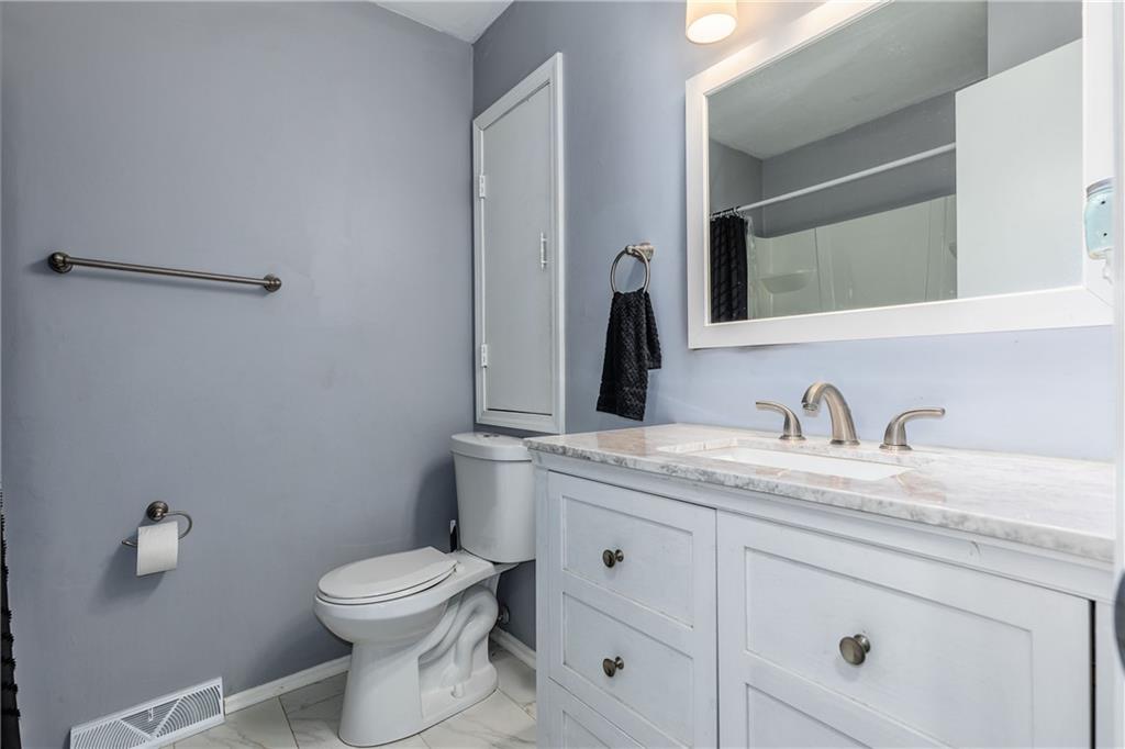 Step inside this beautifully updated home featuring 3 spacious bedrooms and 2.5 bathrooms. Gleaming hardwood floors flow throughout the open main level, where vaulted ceilings create a bright and airy feel. The recently remodeled kitchen showcases new cabinetry, stainless steel appliances—including a brand-new stove—and ample counter space for cooking and entertaining. Both bathrooms have been thoughtfully updated with modern finishes, while the freshly replaced carpet adds warmth and comfort throughout. Recent upgrades also include new windows, interior doors, storm door, and front door, giving the home a refreshed look and improved efficiency. Outside, enjoy the large deck overlooking a sparkling pool and a fully fenced yard—perfect for relaxing, grilling, or gatherings with friends and family. This move-in-ready home combines modern updates, comfort, and outdoor living in one inviting package.