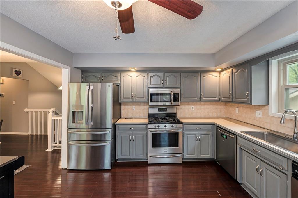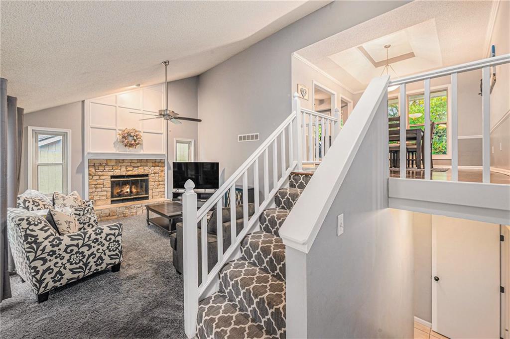 Welcome home to this beautifully maintained front-to-back split nestled in a quiet, friendly neighborhood with mature trees, just a short walk from Happy Rock Park and the new 5-acre Happy Rock Park Dog Park. Fresh exterior paint, new windows, gutter guards, and a 5-year-old HVAC system make this home move-in ready for its next family to love. Step inside to a formal living room filled with natural light, vaulted ceilings, and a cozy fireplace. On the second level, you’ll find a formal dining room with hardwood floors and a well-equipped kitchen featuring stainless steel appliances, a gas stove, gray cabinets, and hardwood floors — and yes, all appliances stay! This home offers 3 generous bedrooms above grade and a 4th bedroom (or office) in the lower level. The lower level also includes a spacious rec room with a wet bar, walk-out access, half bath, and entry to a sub-basement with laundry (washer and dryer stay!). Outside, enjoy the fenced backyard with white vinyl fencing, a freshly stained deck, a beautiful stone patio, and a cozy firepit area backing to mature trees for added privacy. Easy highway access makes commuting a breeze. Conveniently located near new coffee shops like Starbucks and Dutch Bros, popular quick-service restaurants including Burger King, Chipotle, and Five Guys, plus Hy-Vee, Walmart, and QuikTrip — all nearby.