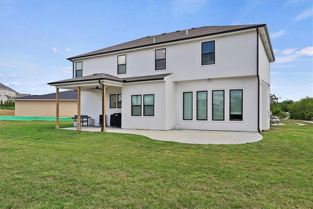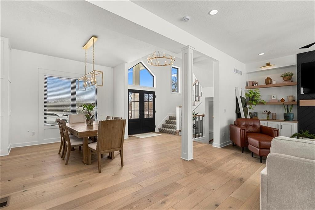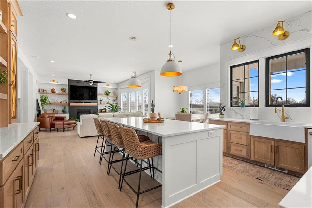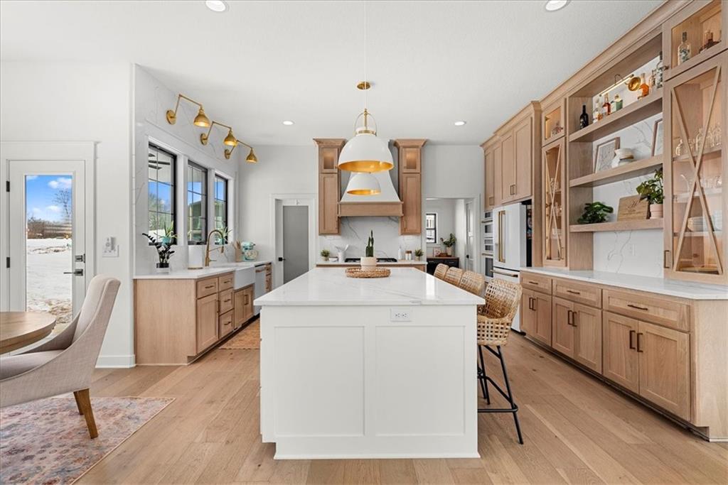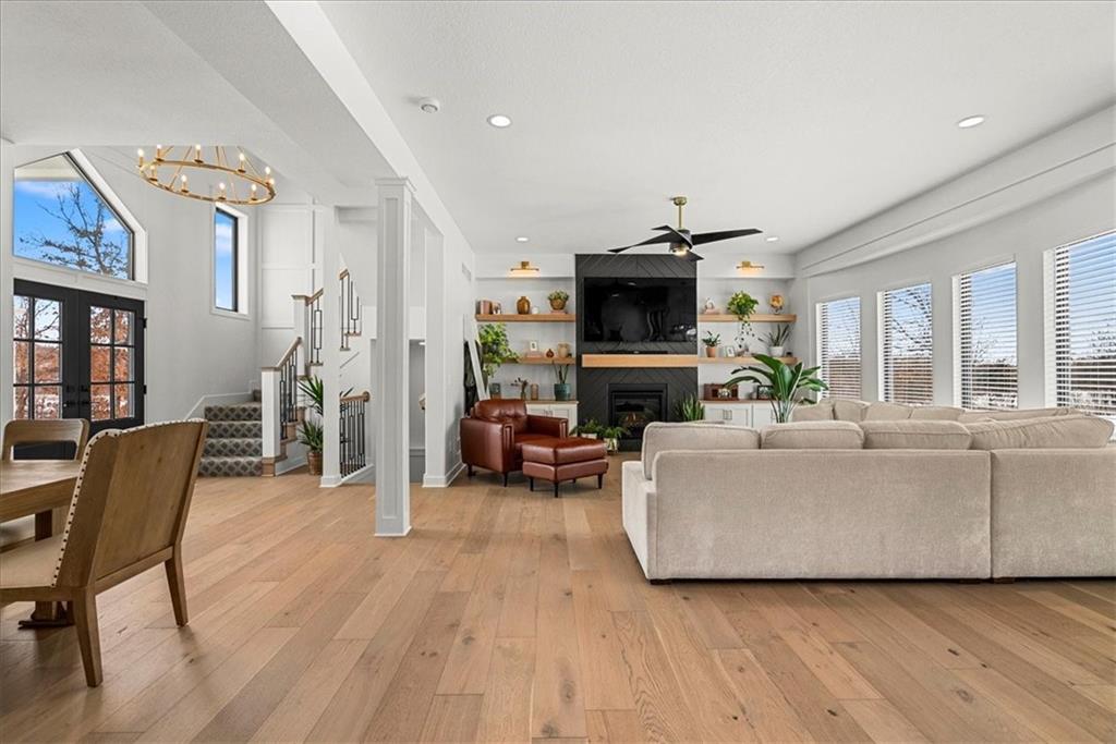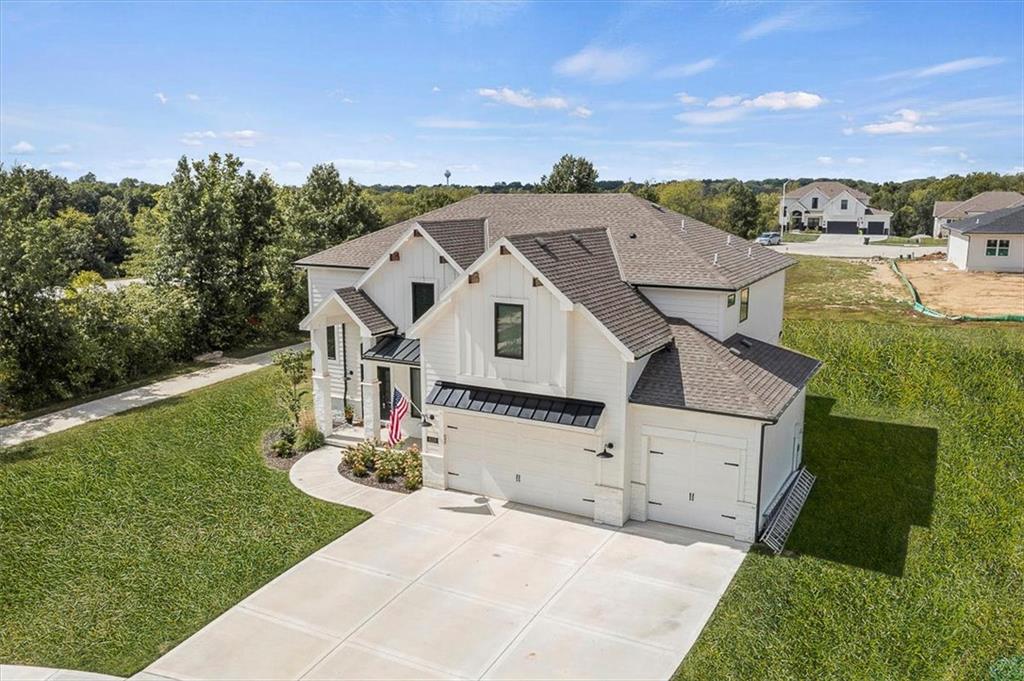 Only 20 min away from Downtown KC, in award winning Park Hill School District. Experience LUXURY, and PRIVACY in this stunningly custom designed 4-bedroom, 3.5-bath modern farmhouse—set on the LARGEST and most PRIVATE lot in the neighborhood, nearly HALF AN ACRE with no neighbors on three sides! Step inside to discover engineered hardwood floors, soaring 10 ft ceilings, and designer-grade finishes throughout. The chef’s kitchen commands attention with custom white oak cabinetry, quartz countertops that extend to the ceiling for a seamless backsplash (no subway tile here!), designer Café appliances with custom ordered handles to match the cabinet hardware and an extended island offering additional seating and storage—perfect for gatherings and entertaining. The spacious living room is anchored by a bold black fireplace surrounded by custom shelving and natural wood accents, creating warmth and sophistication in every detail. Upstairs, retreat to the luxurious primary suite featuring a freestanding soaking tub, luxury high gloss tile, double vanities, and an expansive walk-in closet. Designed for comfort and EFFICIENCY, the home features two A/C units, upgraded heating systems, and an oversized water heater. The extra-tall garage easily accommodates trucks or large SUVs—rare for the area. Outdoors, enjoy unmatched privacy and open green space in the extended newly poured patio. Sellers are willing to negotiate a new iron gate fence around full backyard with acceptable offer! Perfect to enclose for pets! Basement is ready for your finishing touches! Add a full guest suite, bar area, rec room, etc. Many possibilities! The Reserve at Riverstone is in a prime Northland location, with top-rated schools, easy access to highways, the airport, shopping, & restaurants. There is a community swimming pool & trails.