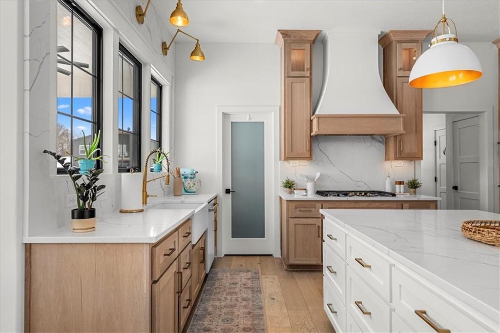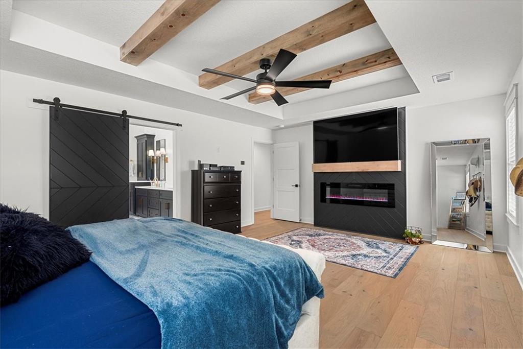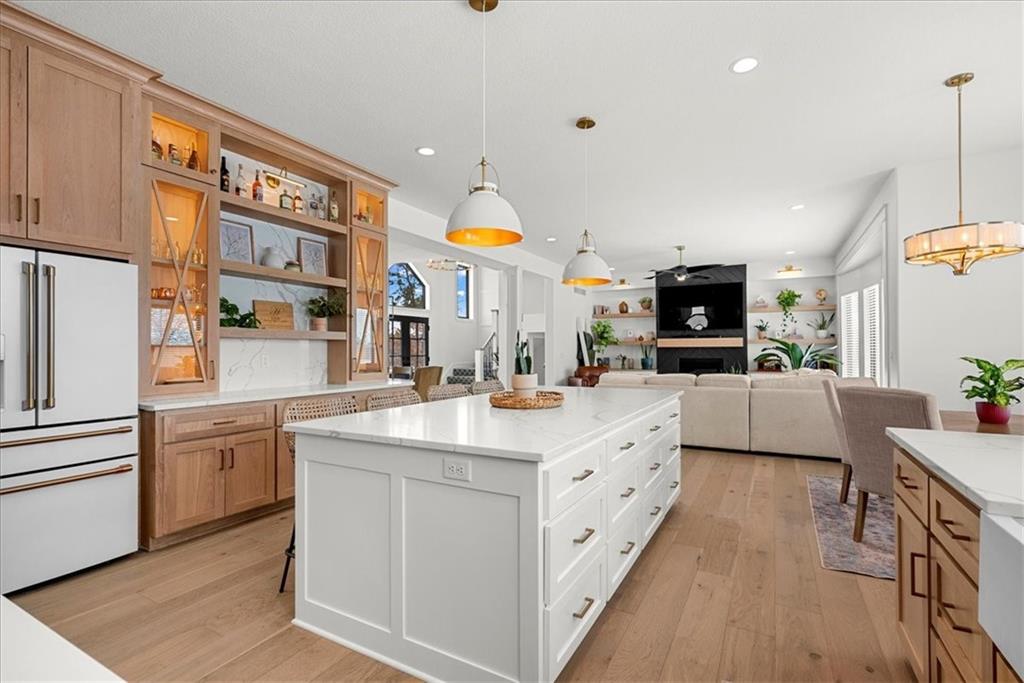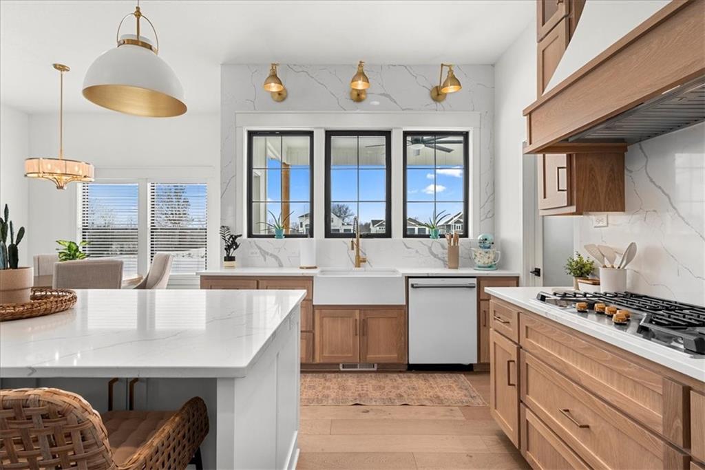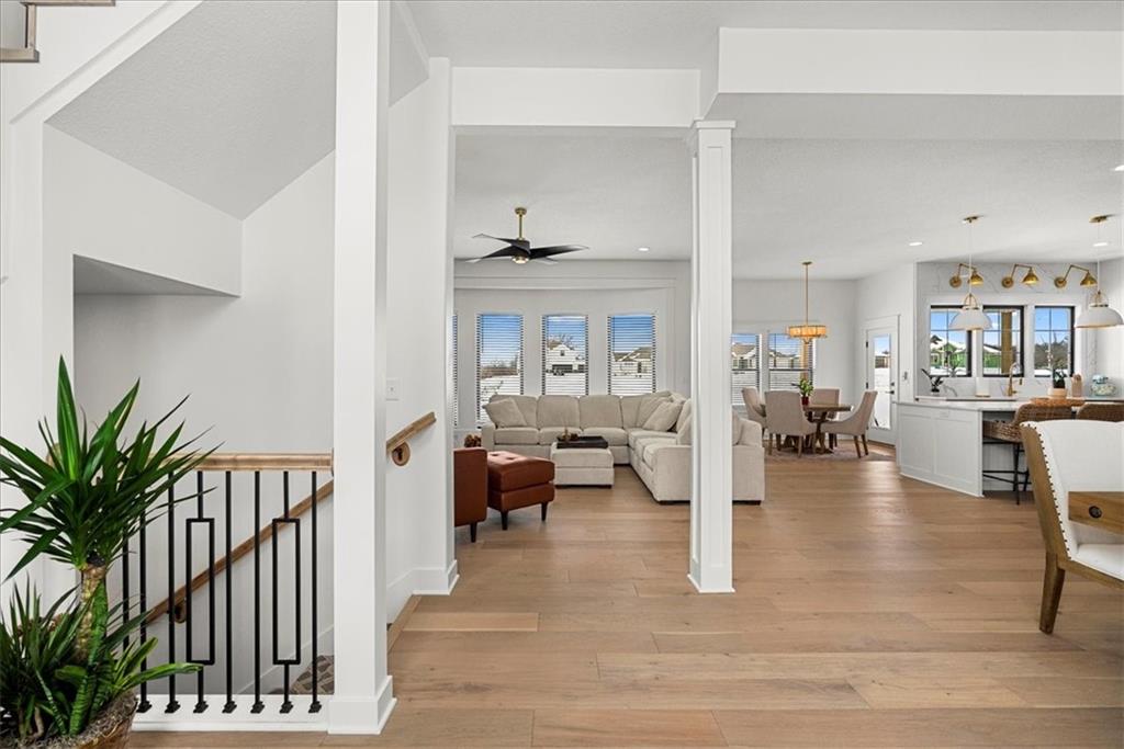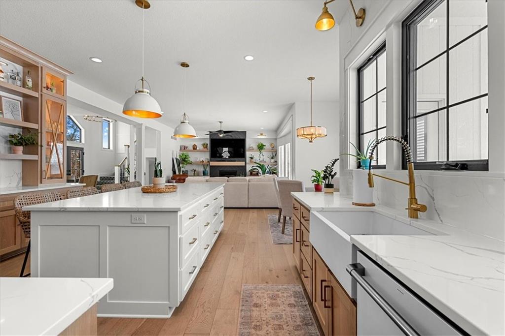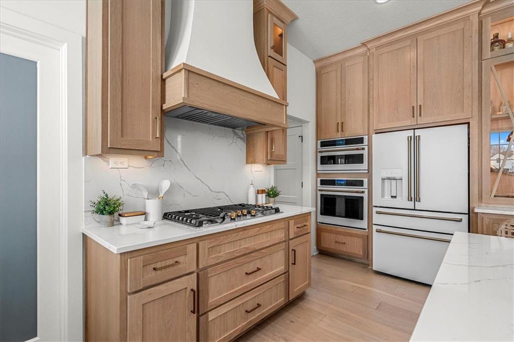 Only 20 min away from Downtown KC, in award winning Park Hill School District. Experience LUXURY, and PRIVACY in this stunningly custom designed 4-bedroom, 3.5-bath modern farmhouse—set on the LARGEST and most PRIVATE lot in the neighborhood, nearly HALF AN ACRE with no neighbors on three sides! Step inside to discover engineered hardwood floors, soaring 10 ft ceilings, and designer-grade finishes throughout. The chef’s kitchen commands attention with custom white oak cabinetry, quartz countertops that extend to the ceiling for a seamless backsplash (no subway tile here!), designer Café appliances with custom ordered handles to match the cabinet hardware and an extended island offering additional seating and storage—perfect for gatherings and entertaining. The spacious living room is anchored by a bold black fireplace surrounded by custom shelving and natural wood accents, creating warmth and sophistication in every detail. Upstairs, retreat to the luxurious primary suite featuring a freestanding soaking tub, luxury high gloss tile, double vanities, and an expansive walk-in closet. Designed for comfort and EFFICIENCY, the home features two A/C units, upgraded heating systems, and an oversized water heater. The extra-tall garage easily accommodates trucks or large SUVs—rare for the area. Outdoors, enjoy unmatched privacy and open green space in the extended newly poured patio. Sellers are willing to negotiate a new iron gate fence around full backyard with acceptable offer! Perfect to enclose for pets! Basement is ready for your finishing touches! Add a full guest suite, bar area, rec room, etc. Many possibilities! The Reserve at Riverstone is in a prime Northland location, with top-rated schools, easy access to highways, the airport, shopping, & restaurants. There is a community swimming pool & trails.