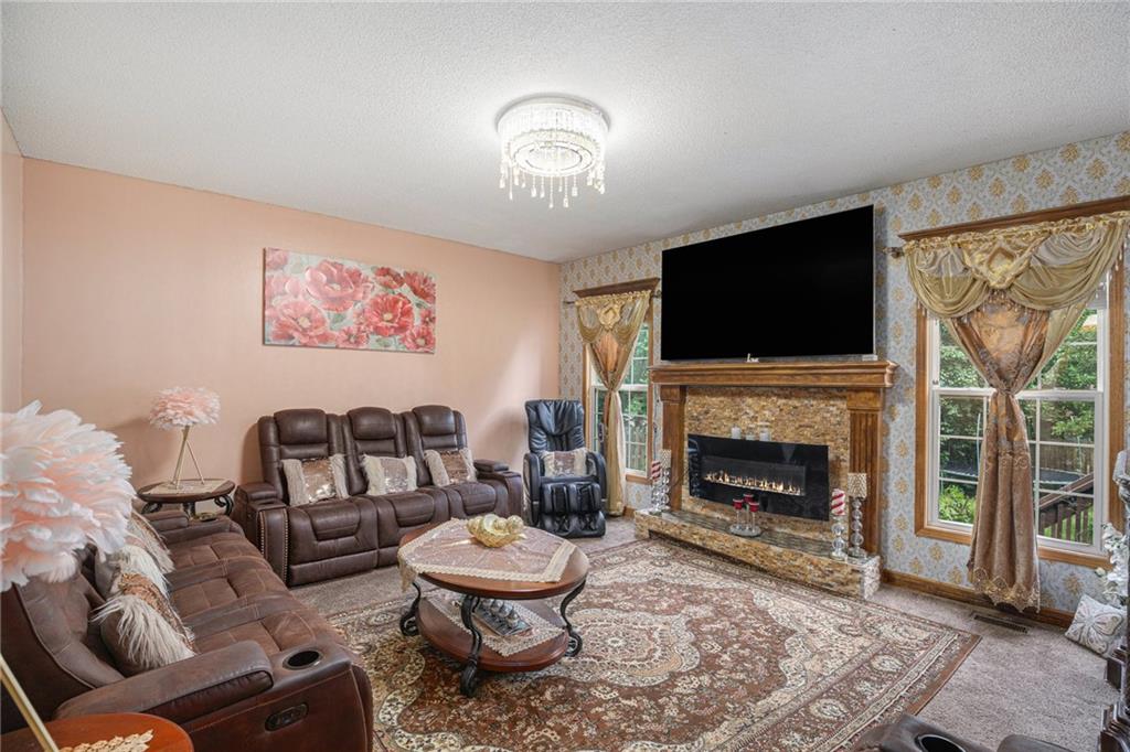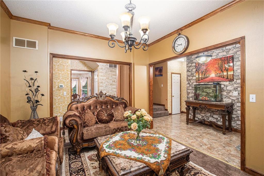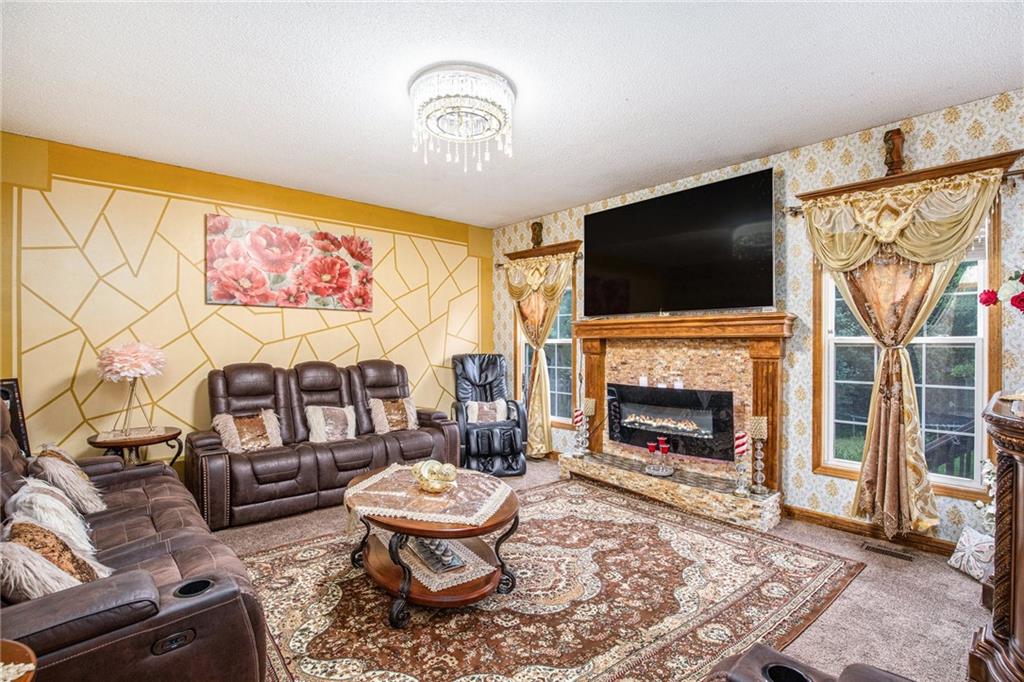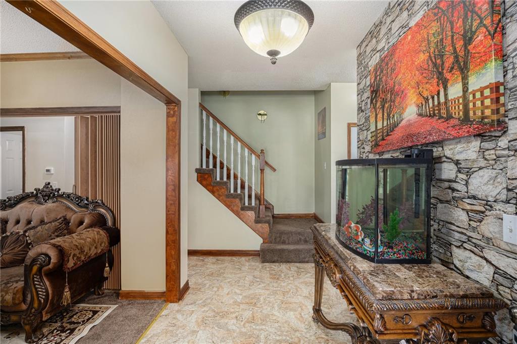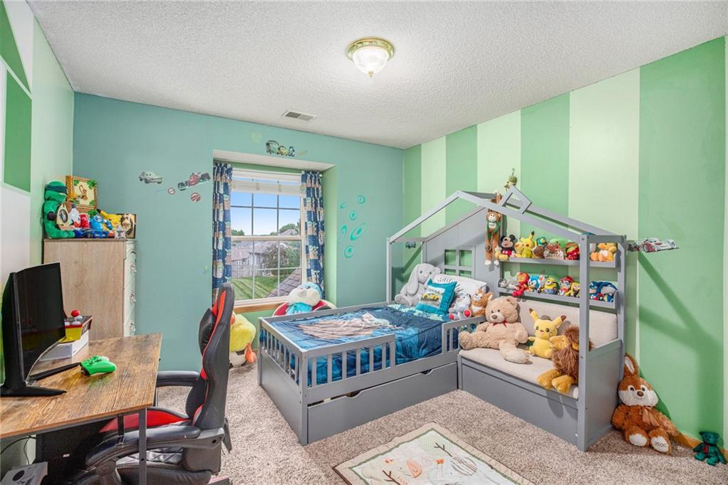 Nestled in the desirable Estates neighborhood of Lee's Summit, Missouri, this 5-bedroom, 4.5-bathroom residence boasts over 3,300 square feet of living space. The property features a fully finished basement, complete with a non-conforming room ideal for use as an office, gym, or guest suite. Constructed in 2001 by Kreisel Building & Development, this 1.5-story home is set on a spacious 11,363 square foot lot. facilities. The upstairs area includes a private master suite along with additional bedrooms, while the basement offers versatile living options. The home comes with a front-facing 2-car garage.