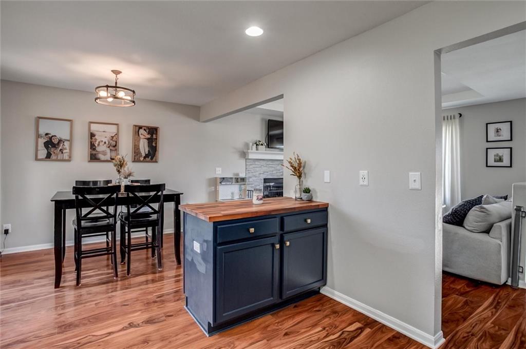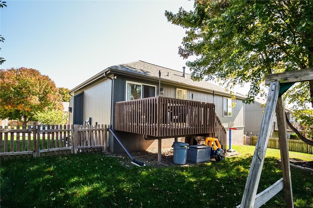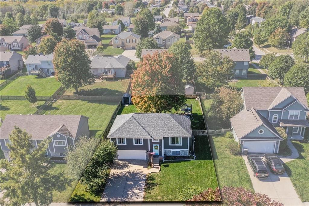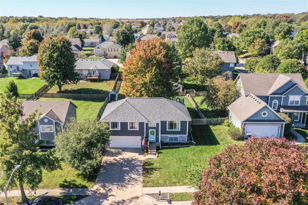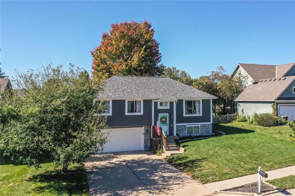 FIXED UP & FABULOUS IN HUNTERS GLEN - Step into style and sophistication with this beautifully refreshed 3-bedroom, 2-bath home. Every detail has been thoughtfully updated, blending fashion-forward design with timeless comfort. A soothing neutral palette and open-concept layout create a seamless flow from the living room to the dining area, deck, and kitchen—perfect for both entertaining and everyday living. The remodeled kitchen is a true showpiece, featuring two-tone cabinetry, sleek quartz countertops, crisp tile backsplash, and a versatile butcher block island that enhances both function and character. Each bedroom has been charmingly updated, and the primary suite offers a relaxing retreat complete with a private en-suite bath. The recently finished lower level provides valuable flex space—ideal for a media room, home office, or guest suite—with a walk-in closet for added storage. Even the garage stands out with finished flooring and organized storage solutions. Nestled near a neighborhood park, Liberty Schools, and convenient Kansas City amenities, this move-in-ready home perfectly balances modern updates with everyday ease. All stainless appliances stay; washer and dryer negotiable.
