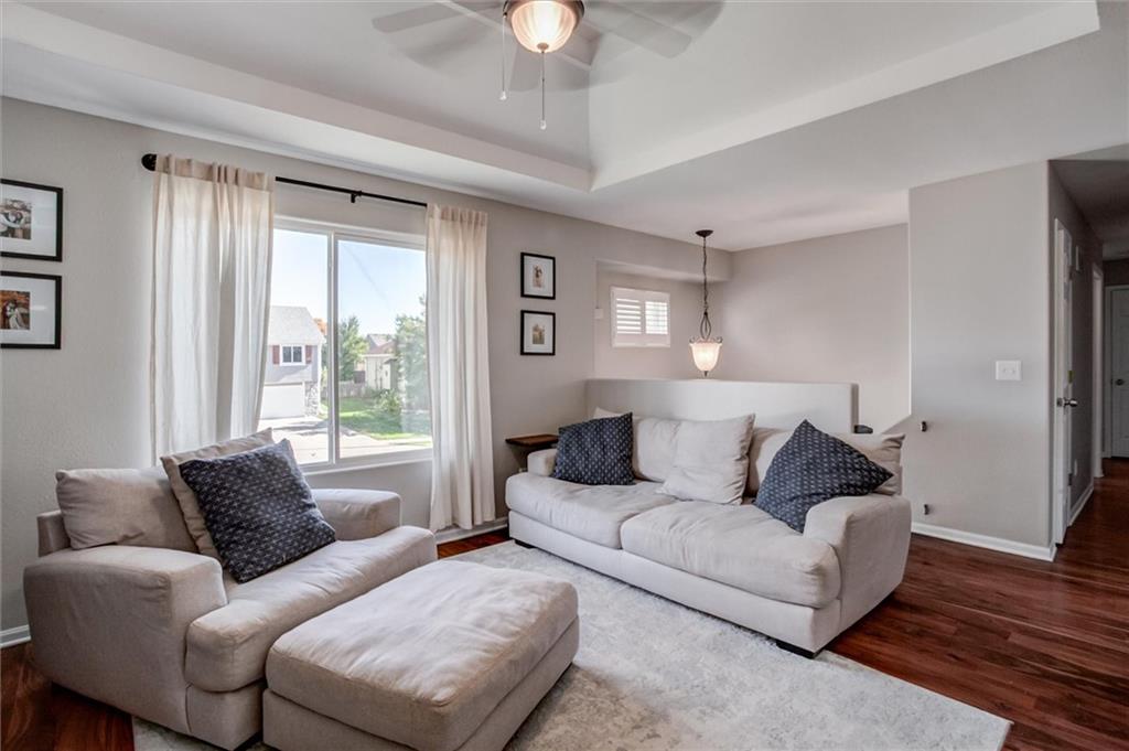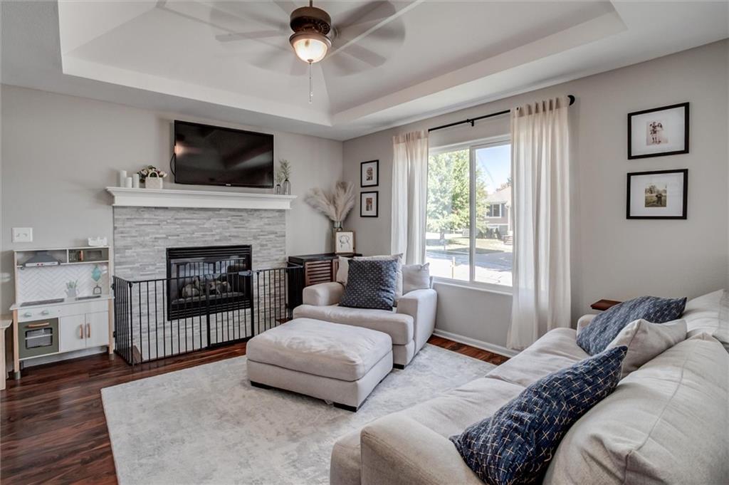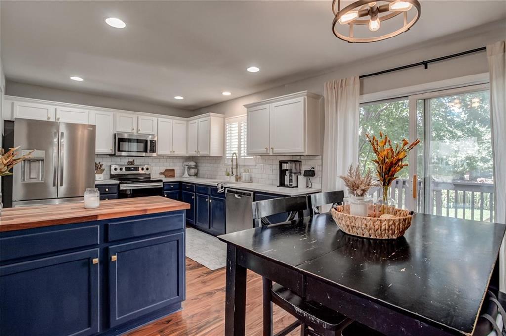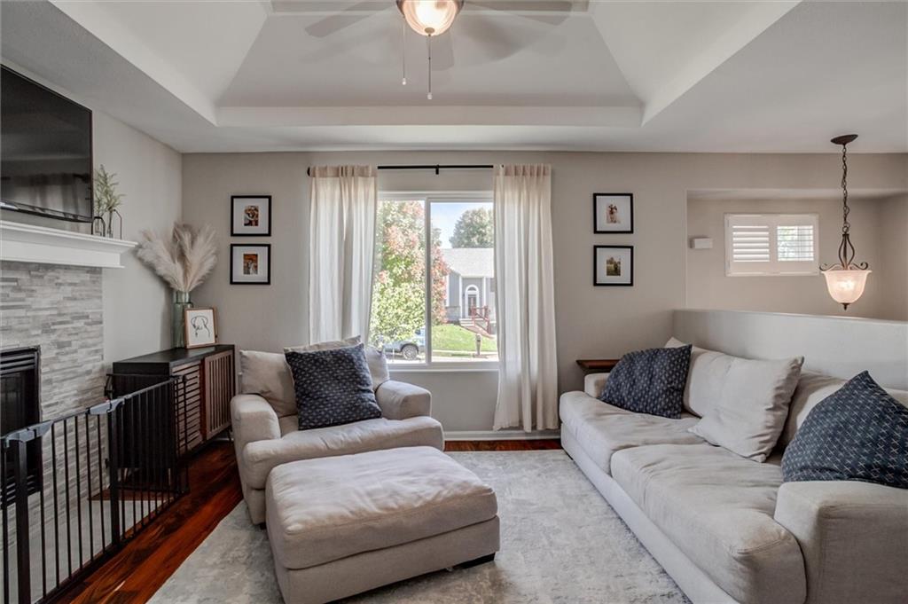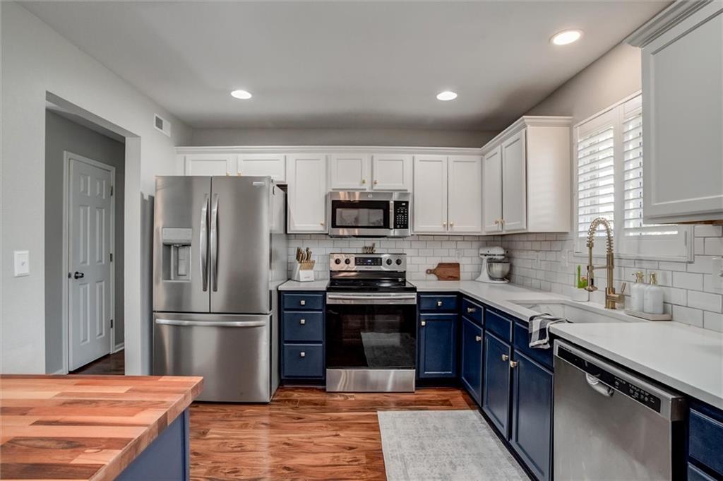FIXED UP & FABULOUS IN HUNTERS GLEN - Step into style and sophistication with this beautifully refreshed 3-bedroom, 2-bath home. Every detail has been thoughtfully updated, blending fashion-forward design with timeless comfort. A soothing neutral palette and open-concept layout create a seamless flow from the living room to the dining area, deck, and kitchen—perfect for both entertaining and everyday living. The remodeled kitchen is a true showpiece, featuring two-tone cabinetry, sleek quartz countertops, crisp tile backsplash, and a versatile butcher block island that enhances both function and character. Each bedroom has been charmingly updated, and the primary suite offers a relaxing retreat complete with a private en-suite bath. The recently finished lower level provides valuable flex space—ideal for a media room, home office, or guest suite—with a walk-in closet for added storage. Even the garage stands out with finished flooring and organized storage solutions. Nestled near a neighborhood park, Liberty Schools, and convenient Kansas City amenities, this move-in-ready home perfectly balances modern updates with everyday ease. All stainless appliances stay; washer and dryer negotiable.