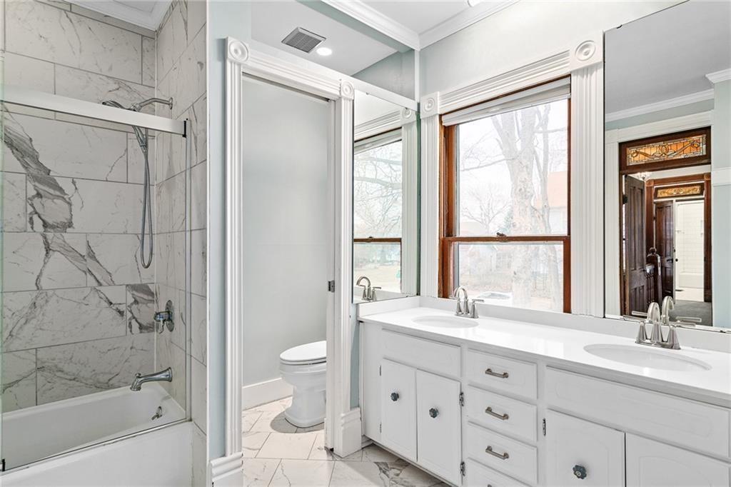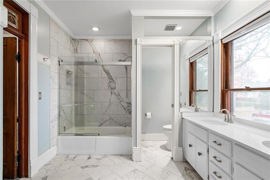 This stately 1899 home was tastefully renovated in 2016, combining classic character with modern updates. The expanded kitchen offers plenty of space and function, with the main level laundry room conveniently located nearby. Original woodwork blends beautifully with the newer finishes, and hardwood floors add warmth throughout. Upstairs you’ll find three spacious, light-filled bedrooms and two fully renovated bathrooms. The finished attic provides additional living space that could serve as a fourth bedroom, office, or playroom. Enjoy your morning coffee in the enclosed sunporch overlooking the backyard. A brand-new custom fence and playset add value and charm, while the deck and large patio create ideal spaces for entertaining or relaxing outdoors. This home has been thoughtfully updated and well cared for—offering the perfect mix of history, comfort, and everyday livability. Don’t miss your chance to make it yours!
