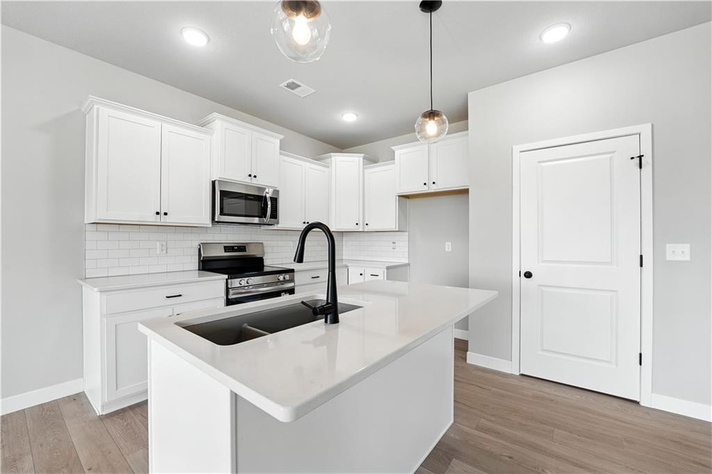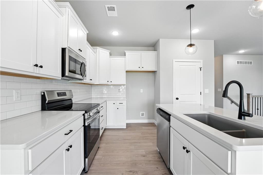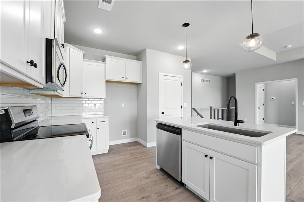 PREMIUM LOT BACKING TO TREES, GREENSPACE & WALKING TRAILS Experience the perfect blend of privacy, nature, and modern living in this beautifully designed home, ideally situated on one of the community’s most desirable lots—backing to mature trees, greenspace, and scenic walking trails. The main level features a dedicated home office, ideal for remote work or study, along with luxury vinyl plank flooring throughout most of the space—offering both style and durability. The kitchen and bathrooms showcase sleek quartz countertops for a clean, modern finish. The finished walkout basement includes a spacious bedroom, a full bath, and a large rec room, offering versatile space for guests, entertainment, or multi-generational living. With 9-foot ceilings, the lower level feels open and inviting. Enjoy the outdoors from the maintenance-free deck or the lower level patio, both overlooking peaceful natural views. Built for low-maintenance living, the home includes James Hardy Siding, and composite decking. Located in a highly sought-after community with top-rated schools, residents enjoy access to walking trails, a neighborhood pool, playground, covered pavilion, and pickleball courts—all just minutes from shopping, dining, and major highways. Don’t miss this rare opportunity to own a home that truly has it all—location, layout, and lifestyle. PHOTOS ARE SIMULATED.