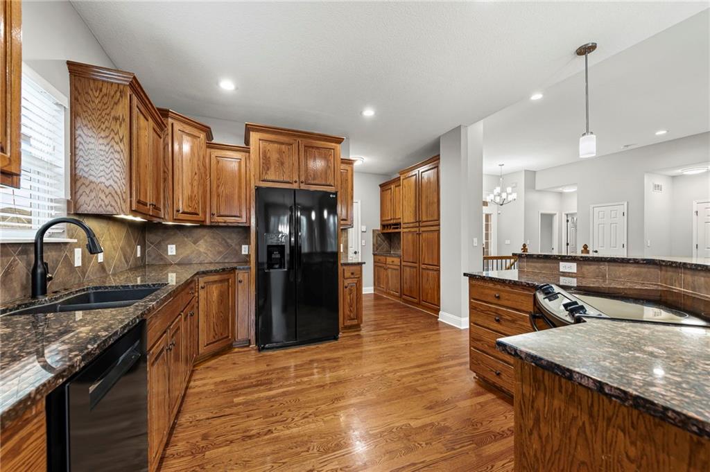 Remarkable Reverse 1.5 Story home featuring 4 Bedrooms, 4 FULL Baths, Walkout Lower Level, positioned perfectly on a stunning treed & fenced lot with flat backyard and beautifully designed professional landscaping! NEW Roof, One year young! NEW Carpet and Pad in WHOLE HOME with designer stair carpet! Newer light fixtures! Modern, elegant, crisp, and trendy style! Spacious, Open Concept! Living room with Gas fireplace visible from Kitchen featuring granite counters, solid wood cabinets, SS Appliances, and Island. Dining area access to new composite deck with stairs, facing east for shaded summer evenings! 2 Main Floor Bedrooms! Large Primary Suite boasting ceramic tile floors, double vanity, jetted tub, tile shower shower AND large walk-in closet! Newly updated main floor 2nd full bath! Walkout LL with spacious recreation room, 3rd & 4th Bedrooms have walk-in closets and their own bathrooms on each wing! Convenient location and access to 152 Highway, near all necessities and entertainment! 8 minutes to the airport! Subdivision Amenities include pool and trails! This lovely home is waiting for you!!!!