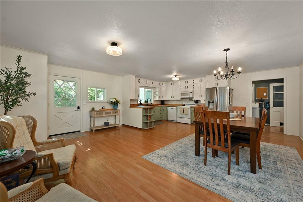 *OPEN HOUSE SAT 11/22 from 1-4 PM! $15k PRICE IMPROVEMENT on this darling house! Seller is ready to make a move! * Discover your dream home: classic charm with a modern twist in Higginsville! Step into a beautifully reimagined 1960s ranch that perfectly blends classic character with contemporary comfort. The inviting curb appeal hints at the thoughtful updates within. This charming home features 3 spacious bedrooms and 2 bathrooms, providing ample space for relaxation and entertaining. The exceptionally large kitchen and dining room combination is a true rarity for a home of this era! Imagine hosting lively dinner parties or enjoying casual daily meals in this bright, open space featuring new butcher block counters that shine under the abundant natural light. This is a room where memories are made! The spacious bedrooms offer ample closets, including a large walk-in closet in the primary. Original hardwood floors bring timeless elegance to compliment the modern updates. Finished flex space in the basement could be an office, workout room, or whatever you decide This home has undergone an extensive transformation and is ready for you to move in. Enjoy the peace of mind that comes with new windows, a fresh palette of paint inside and out, and stylish lighting illuminating every corner. All appliances will stay! Enjoy coffee or a chat with the neighbors on the cozy front deck. Out back, an expansive, fenced backyard is the perfect spot for pets, play, and gardening–all set on over half an acre with mature landscaping that provides beauty and privacy. The detached 2-car garage and unfinished portion of the basement offer plenty of storage for tools and projects. This home is within walking distance to the adorable downtown Higginsville area, where you’ll find charming shops, local eateries, Moose’s Market, and community events. Schedule your private showing today!