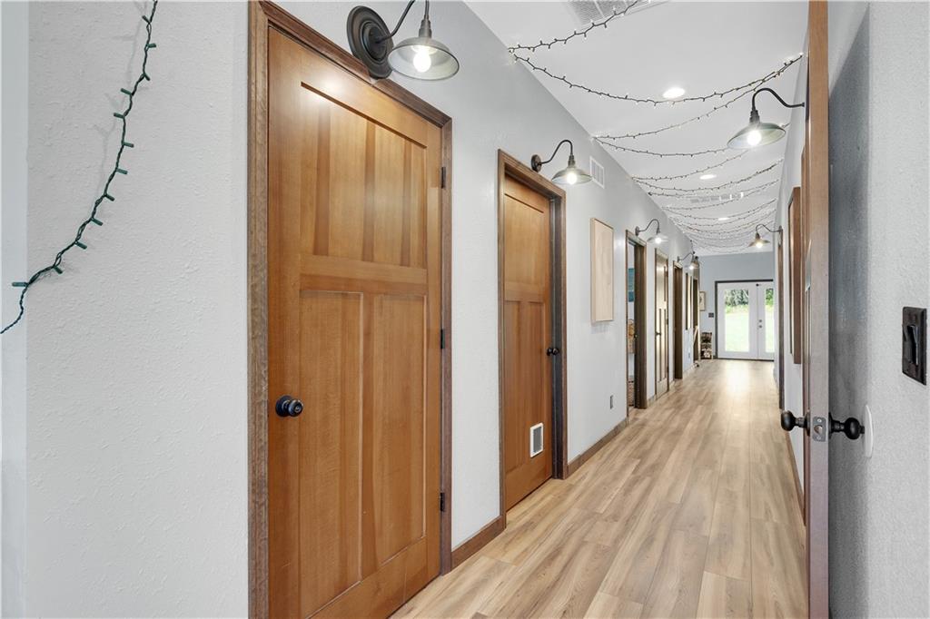 Just North of Warrensburg in the most desirable area of Johnson County, you will find a newly constructed (2023) ranch home on 5 acres of rolling green space, wooded hunting ground, and explorable creek! This farmhouse style home has modern finishes, wood beams, and thoughtful details. It was built with intention! Four spacious bedrooms and 2 large bathrooms, lofted space for additional room, and an open + vaulted kitchen and living space, a lovely covered front porch. There is plenty of space to add a garage or numerous outbuildings. The property is in the Hazel Hill area with a recreation lake nearby and close to land conservation efforts. This is truly a gem of a property - you will want to see it!