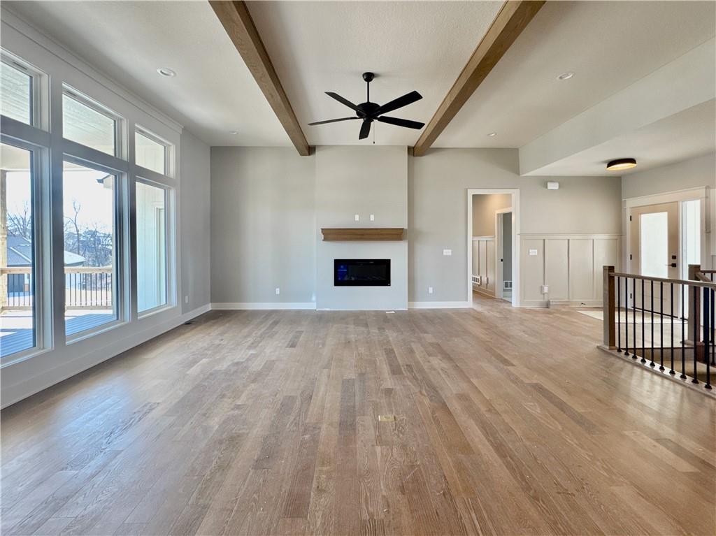 The Woodland — an exquisite reverse 1.5-story home that perfectly blends timeless craftsmanship with modern elegance. Ideally situated on a beautiful corner lot, this home offers extra space, curb appeal, and an abundance of natural light throughout. From the moment you step inside, you’re welcomed by an open-concept layout centered around a striking floor-to-ceiling fireplace — a stunning focal point for gatherings large or small. The gourmet kitchen impresses with an expansive island, oversized prep pantry, and designer finishes that make both everyday living and entertaining effortless. The main level features two bedrooms and two full baths, including a serene primary suite with hardwood floors, private access to the covered deck, and a spa-inspired bath complete with a freestanding tub, walk-in tiled shower, and dual quartz vanities. The spacious primary closet connects conveniently to the laundry room, finished with custom cabinetry and stone countertops. The finished lower level provides the perfect retreat — complete with a generous rec room and wet bar ready for a full-size refrigerator, a private guest suite, and two additional bedrooms sharing a stylish full bath. With 5 bedrooms, 4 baths, and elegant finishes throughout, The Woodland offers the ideal balance of beauty, comfort, and functionality — all nestled on a desirable corner lot that enhances its charm and livability.
