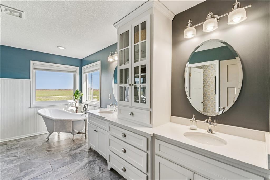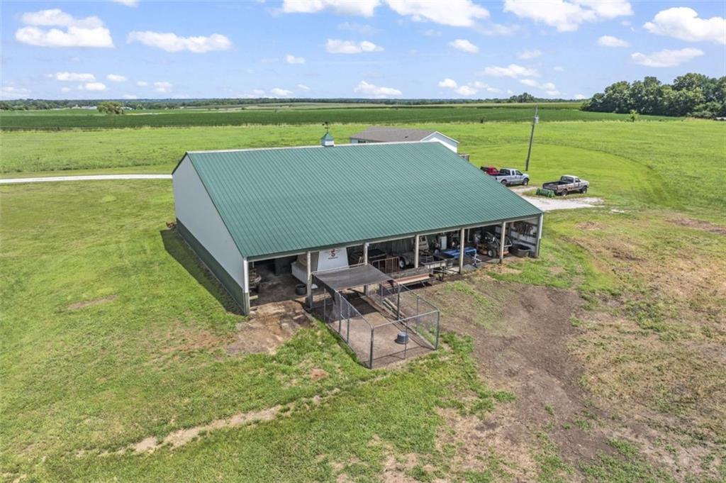 TWO HOMES on a 41.41 ACRES luxurious property. Can be used as a single family, multigenerational, investment and/or income producing. These combined properties offer luxury and versatility over this picturesque land, with it's gorgeous serene pond, a 40X60 barn with lean-to & tack room, Creating the perfect blend of elegance, function, and income-producing potential. *MAIN RESIDENCE is a showcase of craftsmanship and comfort — warm wood floors, a cozy fireplace, and a chef-inspired kitchen designed for entertaining with 3 Bedrooms and a 4th non conformant. Enjoy watching sunsets under the covered front porch or sip coffee on the outside balcony watching the sunrises, taking in sweeping views of open fields. The primary suite and its spa-like luxury bathroom with radiant heated floors, a double vanity and large walk-in shower, large spacious custom closet, make it a relaxing place to escape after a long day.*FULLY FINISHED LOWER LEVEL adds flexibility from watching your favorite TV shows in comfort, along with Tons of storage and storm shelter to go to and a 2nd living space is also included with a fully equipped kitchen, living rm, bedroom, full bathroom, and walk in closet — ideal for guests, extended family, or a private rental suite. *The SECOND PROPERTY includes a beautiful 3-bedroom, 2-bath manufactured residence & extends endless possibilities for multi-generational living, guest accommodations, or passive rental income, whether it be in rent or even the notorious AirBnB, a 2nd full property is definitely an asset. *THE PROPERTY'S NATURAL BEAUTY and thoughtful design, create a sense of retreat & freedom. Whether you’re watching sunsets over the pond, hosting family gatherings, or managing livestock in the barn, this estate offers the space and serenity. *PERFECTLY LOCATED 15 min from Harrisonville & Louisburg, and only 45 min from downtown KC, this property delivers privacy and convenience