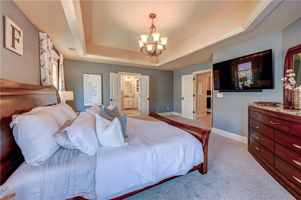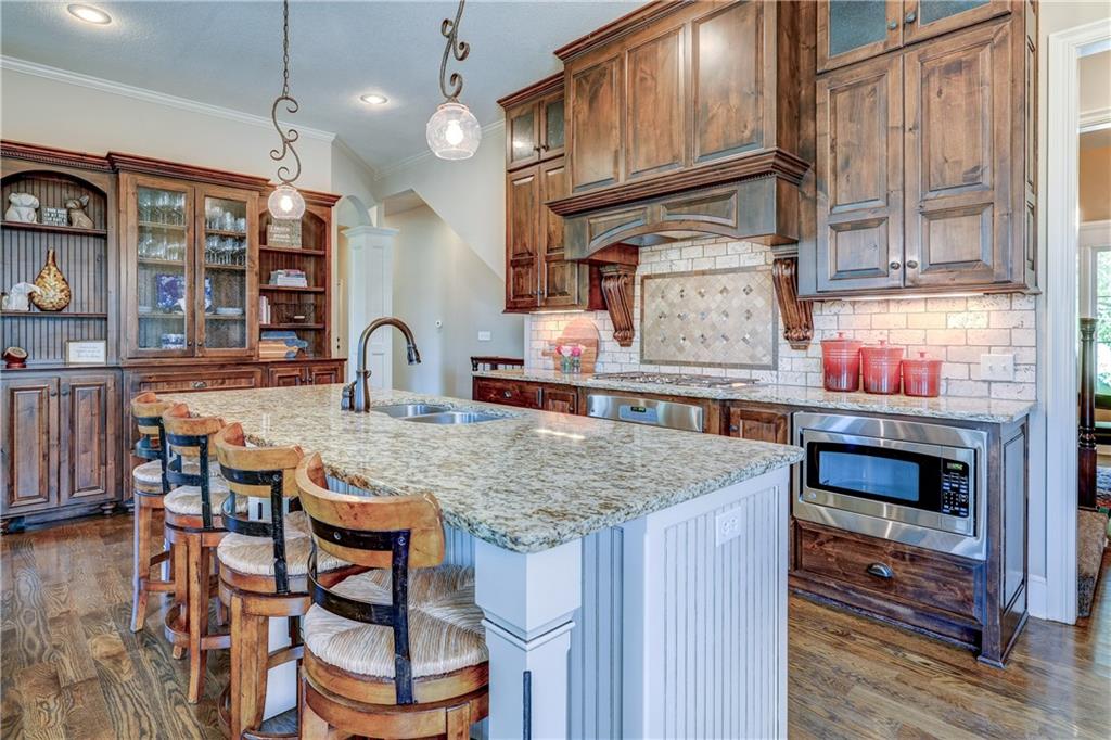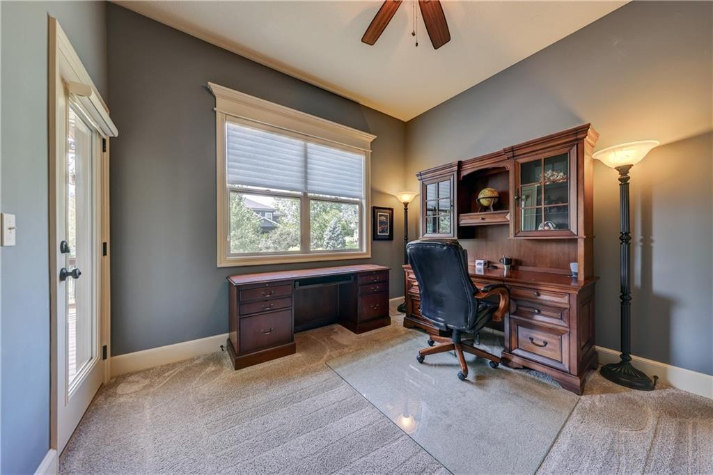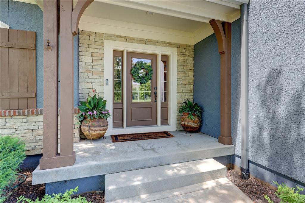 Great opportunity to live in Mills Farm within the top-rated Blue Valley school district. This 5-bedroom/5-bath two-story was quality built by Estes Homes and it shows in the trim work and details throughout. An impressive two-story foyer sets the tone, flanked by a vaulted dining room with wood beams and a first floor office/flex/bedroom next to a ¾ bath. The kitchen checks every box: large walk-in pantry, butler’s pantry with beverage fridge, large island, 5-burner gas cooktop, and front/back staircases for easy flow. Professionally refinished hardwoods on most of first floor and brand-new upgraded carpet (except the flex room). Full stucco exterior with newer paint. Outdoors is built for everyday living: a large covered deck with low-maintenance composite decking, outdoor fireplace with TV hook-up, a generous stamped patio, and a black metal fence. Three total fireplaces add warmth inside and out. The daylight lower level brings in natural light through seven windows and is ready to finish for additional living space. Roof is less than a year old. Enjoy the Mills Farm lifestyle, full of amenities, including: three pools, remodeled clubhouse with workout room, play area, pickleball, tennis courts and sand volleyball!