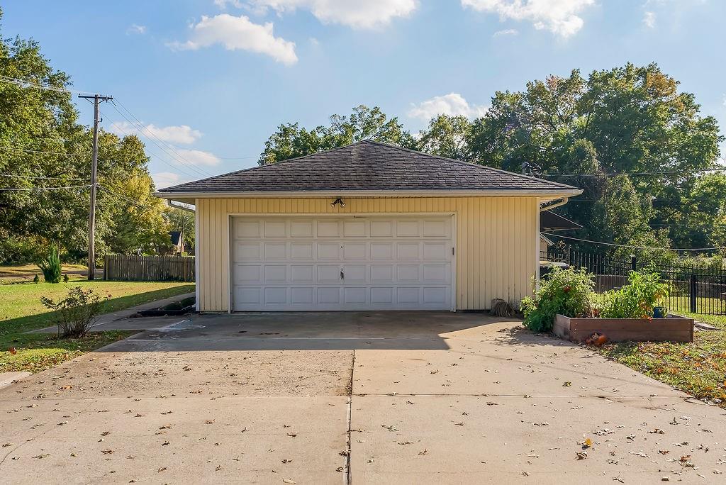 This well-maintained ranch offers classic charm and practical updates on a spacious corner lot. Step inside to find a light-filled living area and a cozy kitchen with warm wood paneling, stainless steel appliances, and durable vinyl plank flooring. The main level features beautiful hardwood floors throughout the bedrooms and hallway, while the large unfinished basement provides tons of storage or future expansion potential. Enjoy a two-car attached garage plus an additional detached garage—perfect for a workshop or extra storage. Recent improvements include a newer roof and updated mechanicals, giving peace of mind for years to come. Conveniently located near shopping, restaurants, and major highways, this home offers easy access to everything Kansas City has to offer. Whether you’re a first-time buyer, investor, or simply looking to downsize, this property combines value, function, and potential in one inviting package.