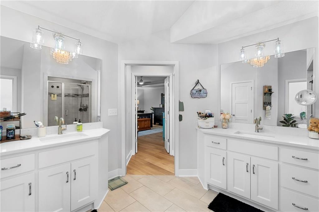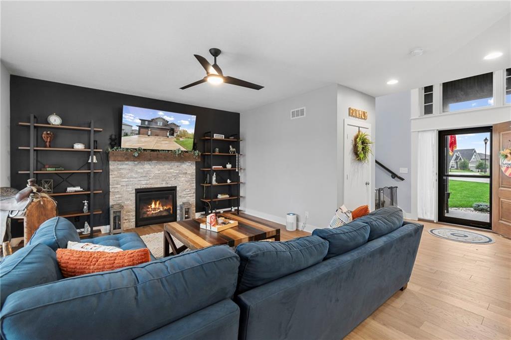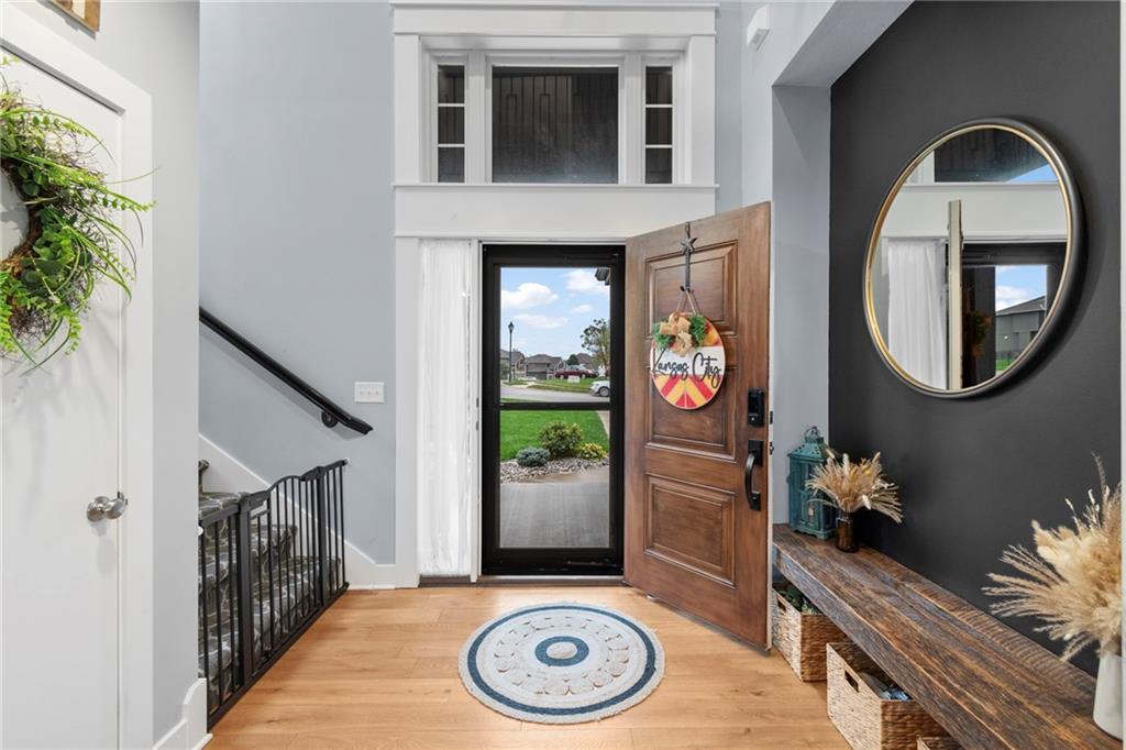 Welcome to this stunning modern home in the coveted community of Seven Bridges. Set on nearly a HALF-ACRE, one of the LARGEST LOTS in the neighborhood, this property seamlessly blends timeless design with everyday comfort. The newly painted exterior showcases dark stucco, warm wood garage doors, and stone accents that create instant curb appeal. Inside, wood floors flow throughout an open-concept layout filled with natural light from oversized windows. The kitchen, with its large quartz island, elegant gray arabesque backsplash, and walk-in pantry, opens to a cozy family room and covered deck. The adjoining patio, connected by the walkout basement, creates a seamless indoor-outdoor flow. Step outside to a giant backyard with fresh landscaping, full fencing, and a sprinkler system. The yard transitions beautifully from the neighborhood’s gentle landscape into wide-open green space beyond, making every sunset view unforgettable. This home includes abundant storage closets, a practical mudroom with a built-in desk, and a deep utility sink in the laundry room. The primary suite feels like a private retreat with an oversized walk-in closet that connects directly to the laundry room. The spa-style bath features double vanities, a freestanding tub, a dual-head tile shower, and an elegant cascading chandelier. The walkout basement has large windows that bring in natural light and endless potential to finish your way. This fall, picture family nights by the fire, weekend games in the yard, and quiet mornings on the porch with coffee and sunrise views. Seven Bridges offers resort-style amenities including pools, tennis and basketball courts, a clubhouse, playground, and scenic walking paths for community living at its best.