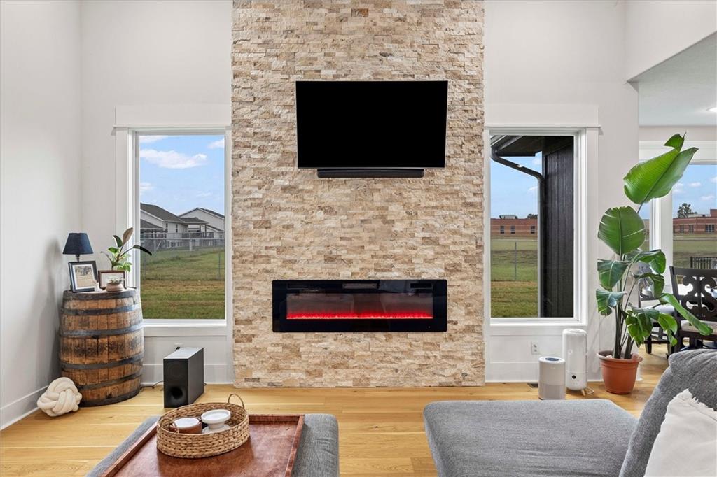 Fantastic flow and functionality offered in this floor plan that blends contemporary design and classic charm. This true ranch offers 3 spacious bedrooms with two beautifully appointed bathrooms. Neutral palette compliments any style. Striking exterior gives way to an interior with 12' entry leading to great room and kitchen & dining that is both modern and timeless. Kitchen features quartz counters, gas range, butlers pantry that leads to main pantry .Great room with floor-ceiling stone electric fireplace. Lovely master suite with walk in closet. Relaxing back patio. Tandem 4 car garage for plenty of room for vehicles, toys and storage. Buyer bought during construction. Upgrades over allowances on fixtures, flooring, appliances.