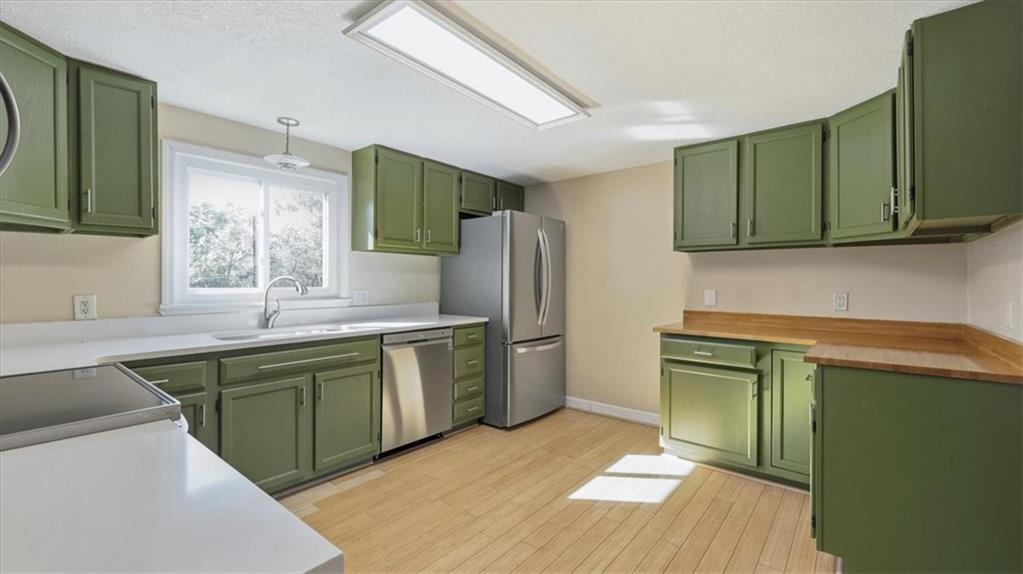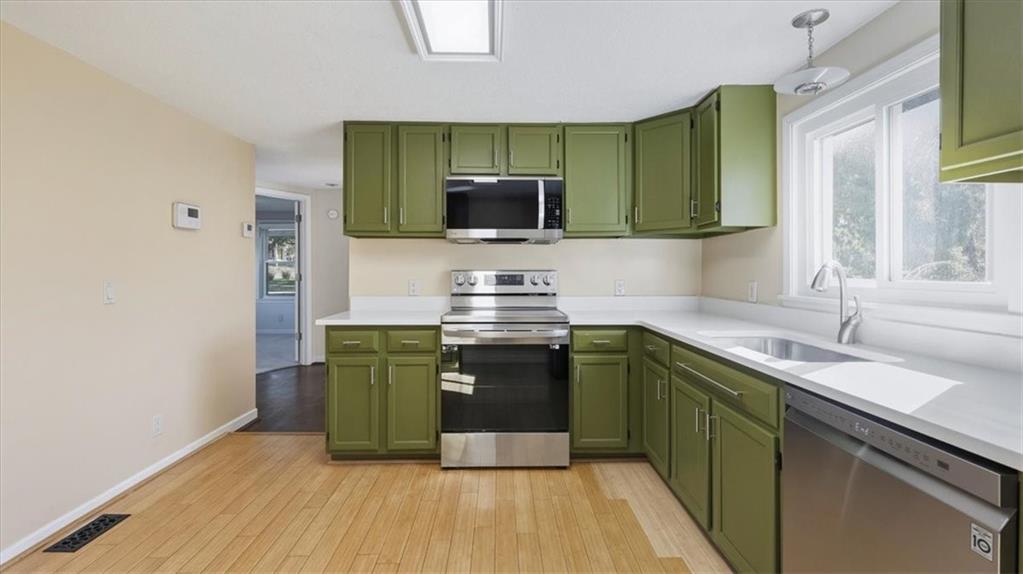 Remodeled Cape Cod in the Rosedale area with four true bedrooms and two full baths. Wood floors welcome you into a bright living area. The oversized kitchen offers generous cabinet space, bamboo flooring, and included appliances. The main hall bath is updated with tile and a vessel sink. Upstairs adds two large bedrooms plus a versatile loft study nook. The lower level features a tiled bonus room and a concealed steel door room. Thermal windows and forced air heat. Vinyl siding and composition roof for easy care. Deep lot about 61 by 180 with trees and partial fencing. Extra long concrete drive leads to a two-stall carport with room for additional parking. Enjoy the back deck and a patio. Convenient access to shops, services, KU Med, and the Plaza. Well cared for and move in ready.