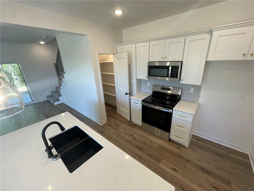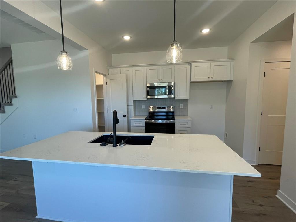 This beautiful 3-bedroom, 2.5-bathroom new construction home showcases a sleek modern design and a well-equipped kitchen featuring a large island with quartz countertops, stainless steel appliances and a spacious walk-in pantry. The main ensuite includes vaulted ceilings, a generous walk-in closet with built-in shelving, and a stylish attached primary bath. Enjoy convenient ground-level access to the rear patio and fully landscaped yard—perfect for pets, entertaining, and family activities. Spacious two-car garage offering plenty of room for parking and storage. Home is currently under construction; pictures are of a completed build and similar floor plan. Finishes and colors may vary. Estimated completion date is Nov 15.